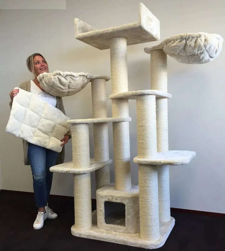 Wood Floral Cat Tree Tower, Wooden Cat Tower, Modern Cat Climbing Tree, Cat Furniture, Cat Gift, Luxury Cat Condo, Flower Cat Tree