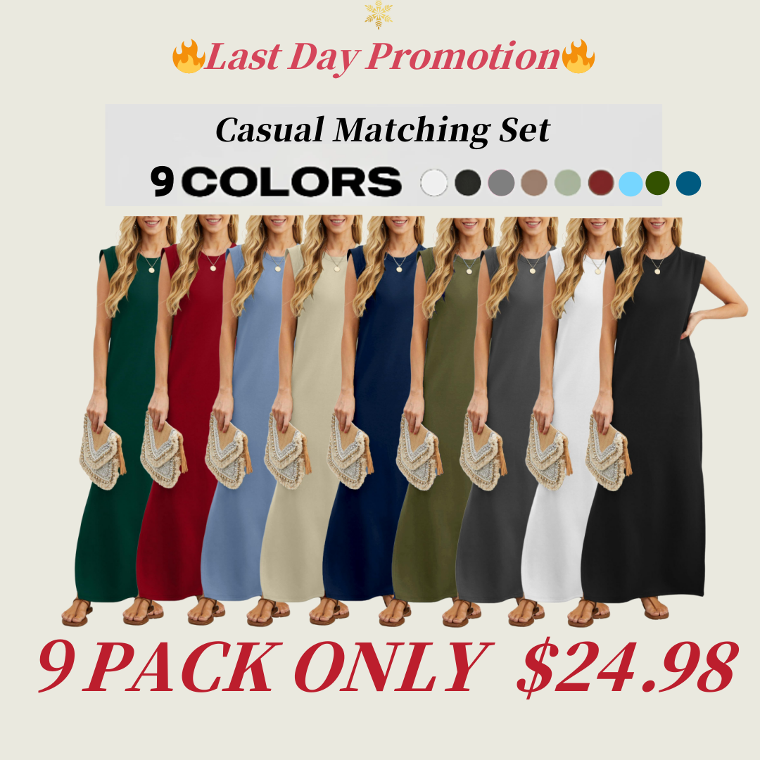 🔥Last day promotion!🔥Solid color pocket long dress, casual short-sleeved crew neck dress