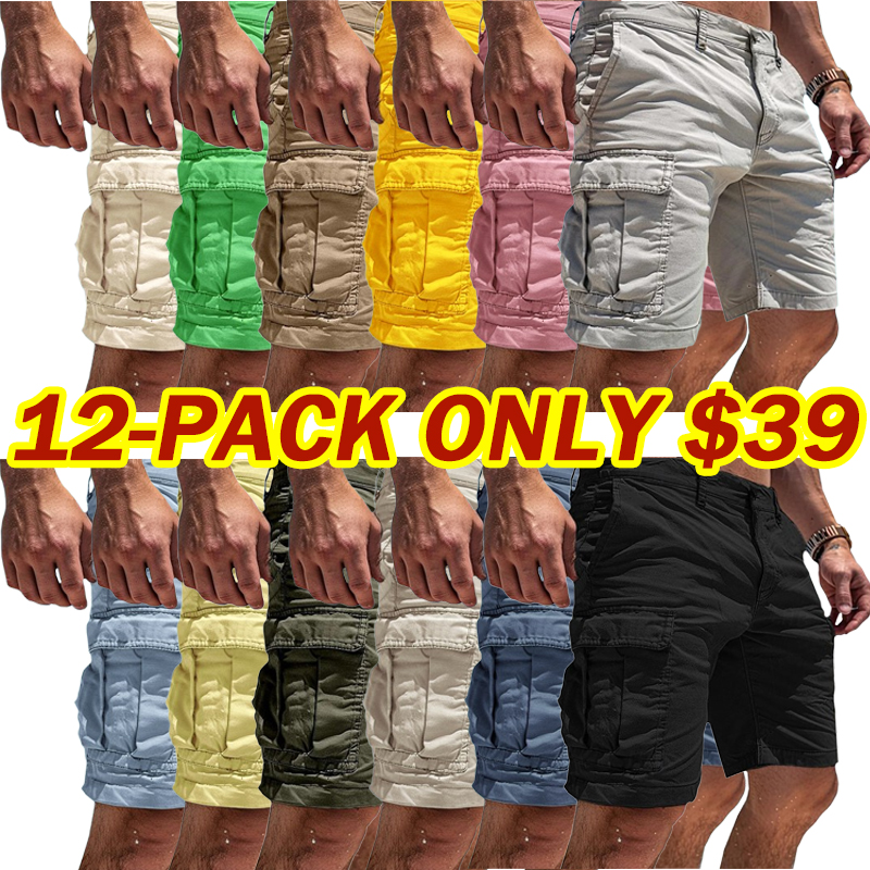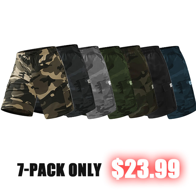 🔥7 Pack- Men's Solid / Camo Print Cargo Shorts