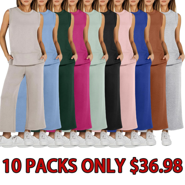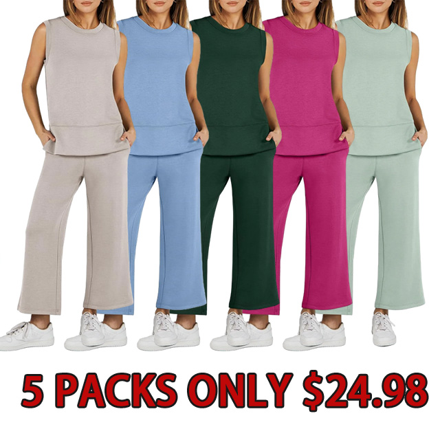Women's 2 Piece Sets Summer Outfits Sleeveless Wide Leg Tracksuits Casual Sweat Sets Lounge Sweatsuits