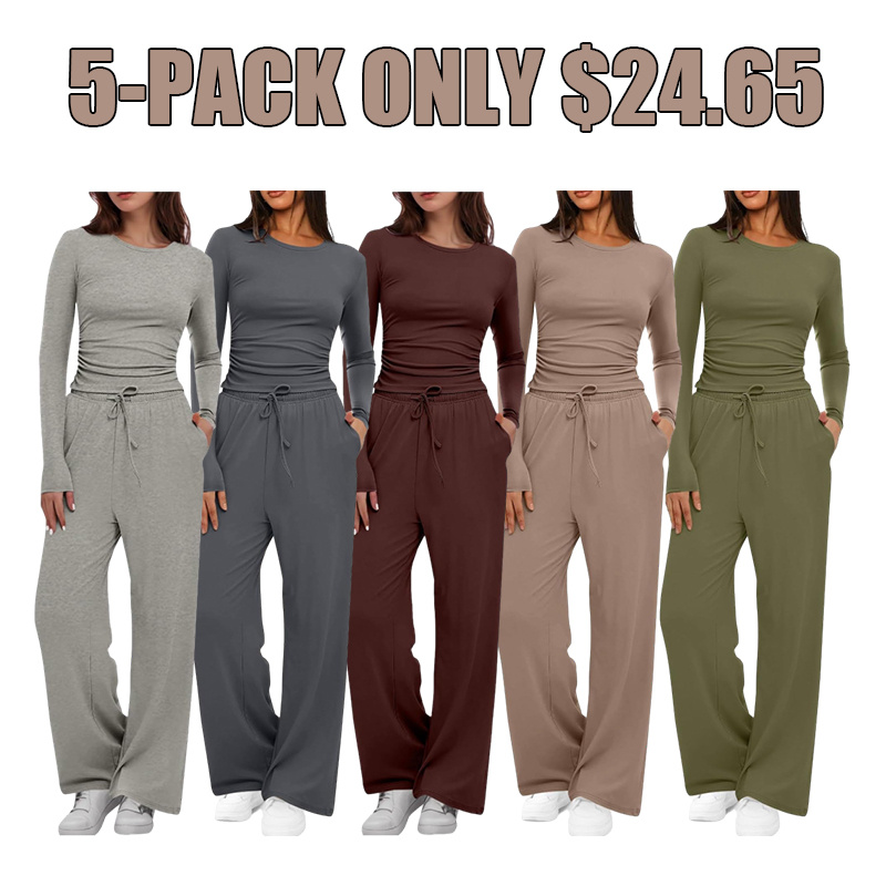Women's 2 Piece Sets Fall Outfits Long Sleeve Wide Leg Tracksuits Casual Lounge Set Matching Sets