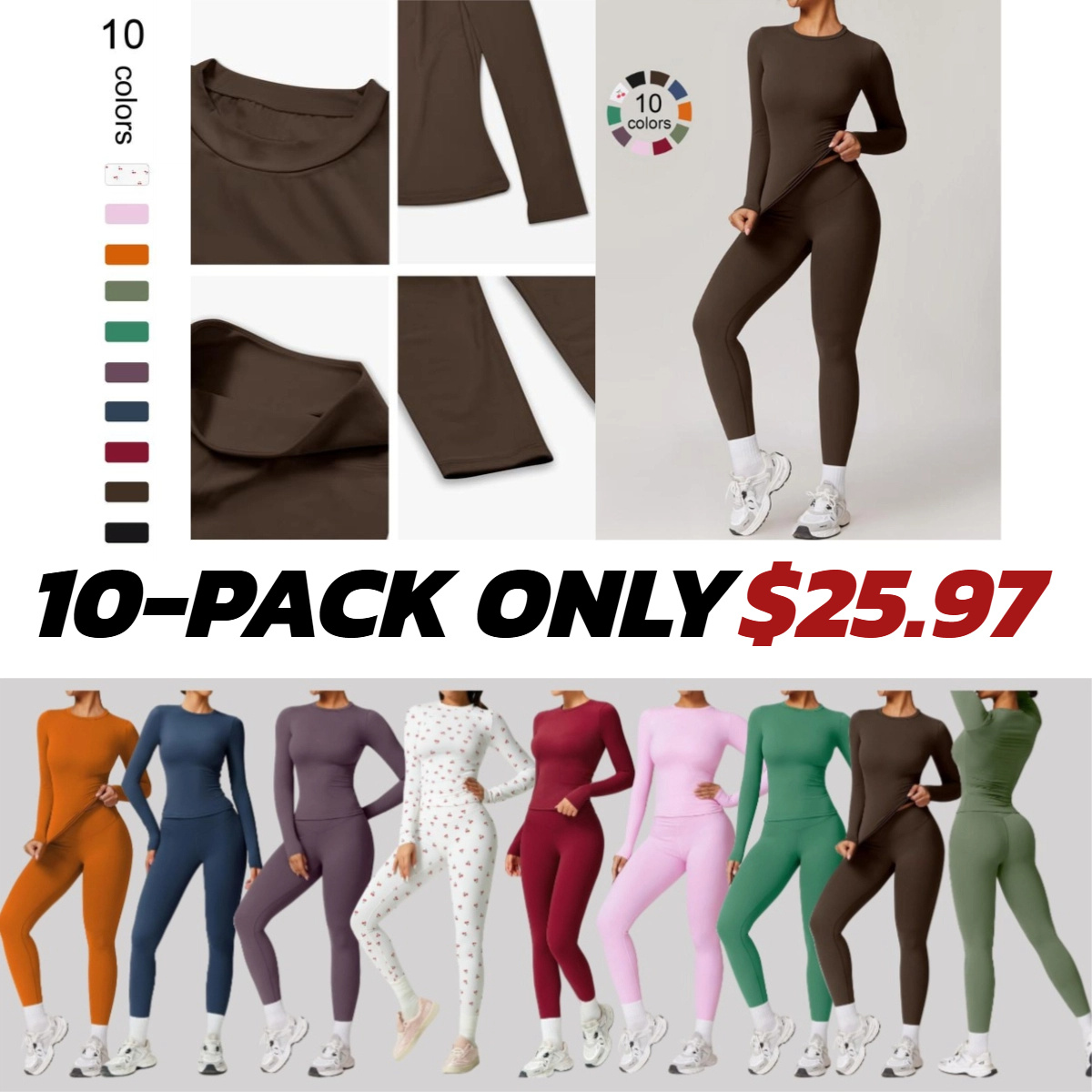 🔥Women’s High‐Elastic Patchwork Active Set – Long Sleeve Slim Fit & Compression Pants