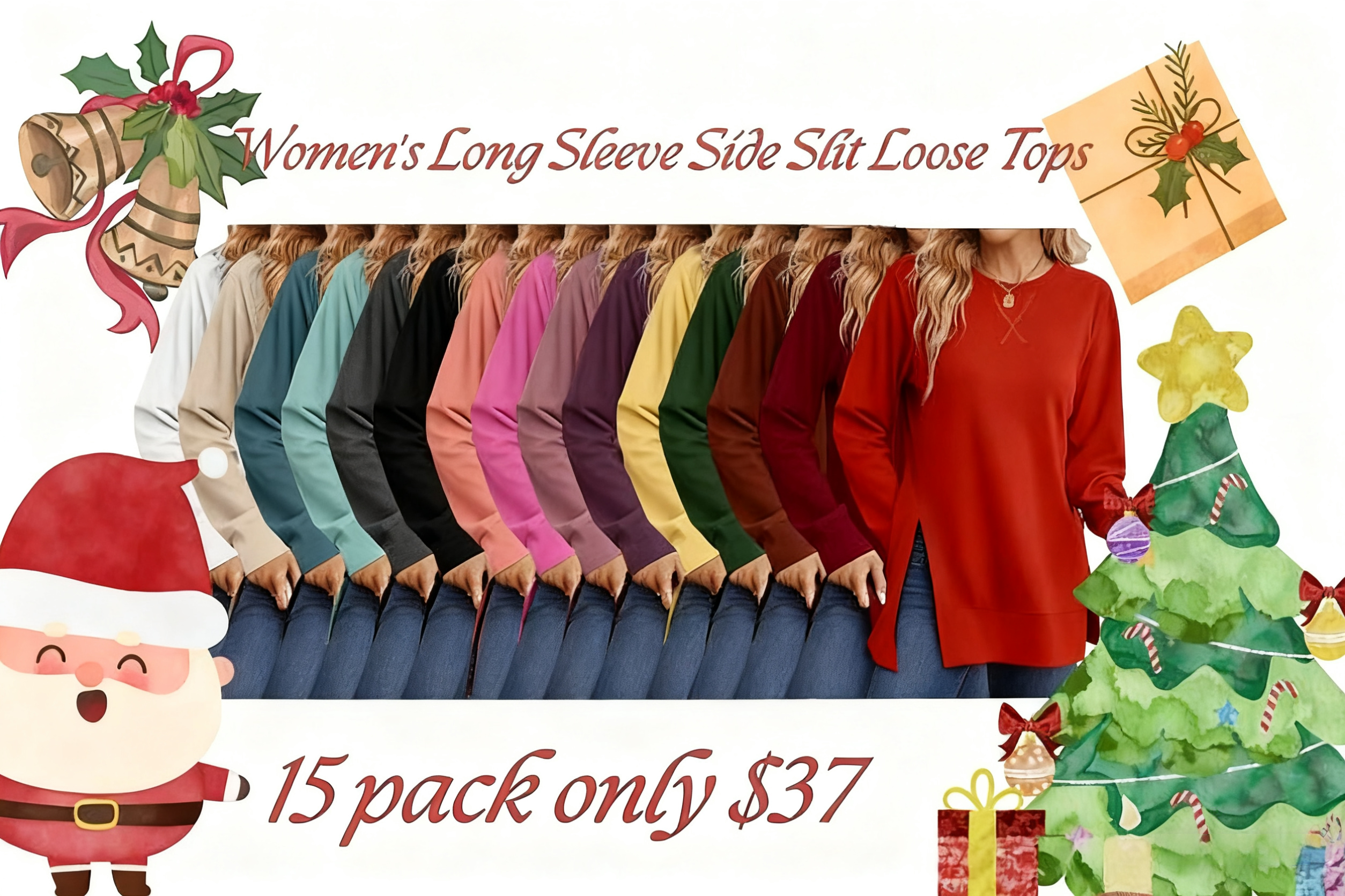 Christmas Deals$25.88 for 8 pack- Women's Long Sleeve Side Slit Loose Tops(Multiple Colors)