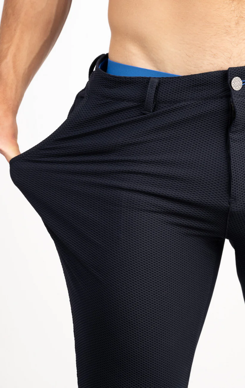 What's the problem with traditional suiting? The heat! We took the cooling mesh fabric that’s commonly found in sportswear, and upscaled and retailored it for use in The Air Suit. The Air Suit functions like all Our Suits and Pants, combining the functionality of joggers with the refined style of tailored trousers for extreme stretch and comfort, no wrinkles, plenty of pockets, and a shirt-gripping waistband. Don't be that dressed-up overheated dude with an overused sweaty tissue in your pocket - stay cool and airy all day long!