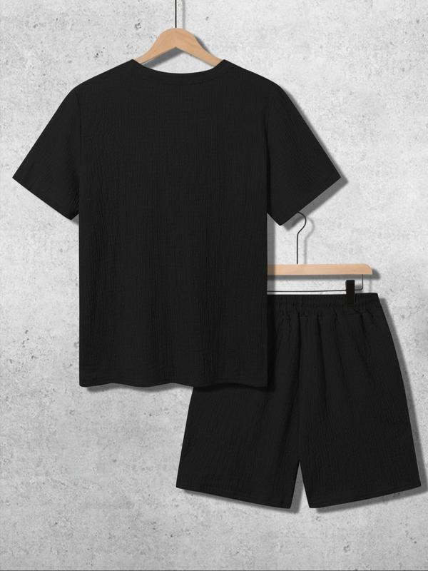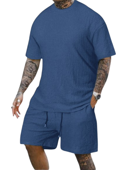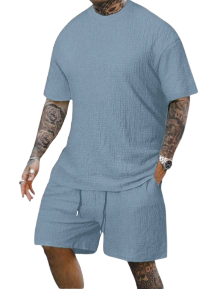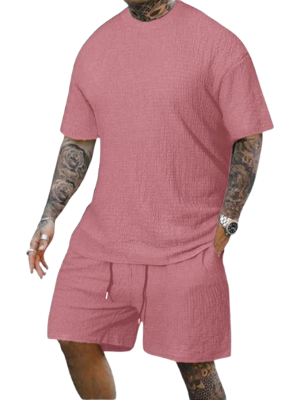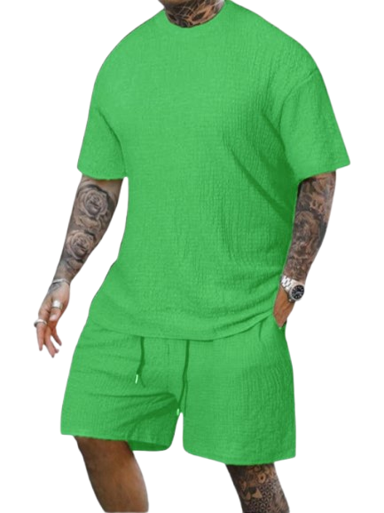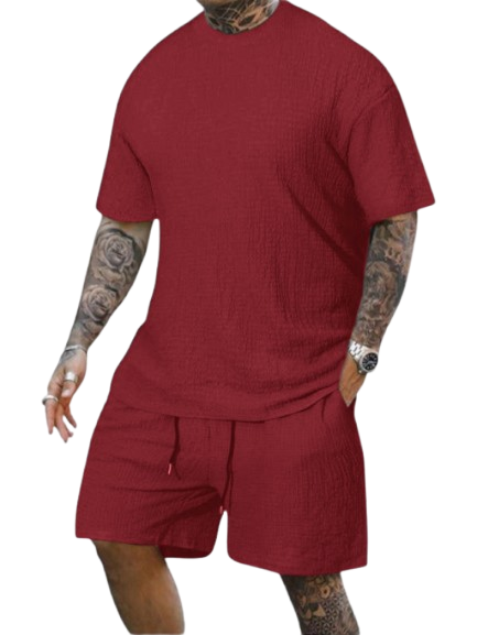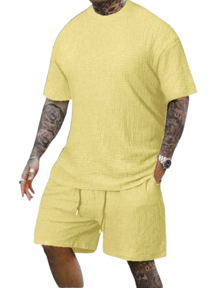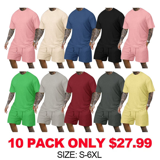 8 Pack-Men's Solid Textured Round Neck Tee & Drawstring Waist Shorts