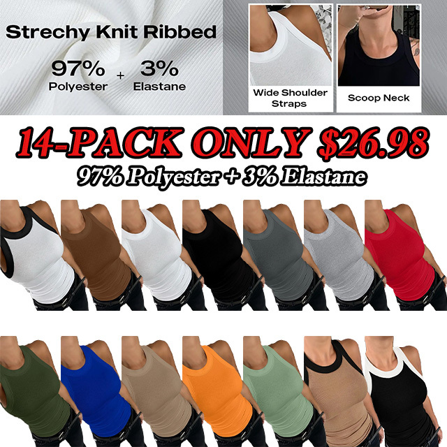 - Package Include: 14PCS, the womens tank tops features knit ribbed fabric, which is not built in bra, but stretchy and comfortable to wear, lightweight and ultra soft stretchy fabric creates naked sensation, the fabric is breathable and moisture wicking, which means it helps keep you cool and dry during even the workouts