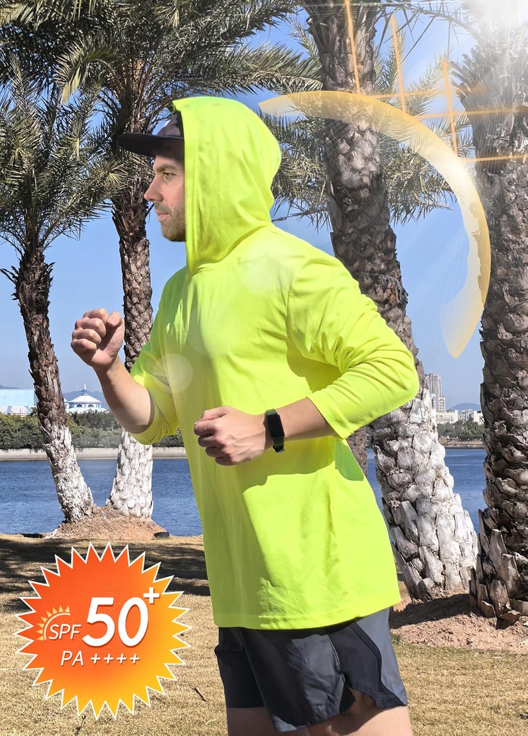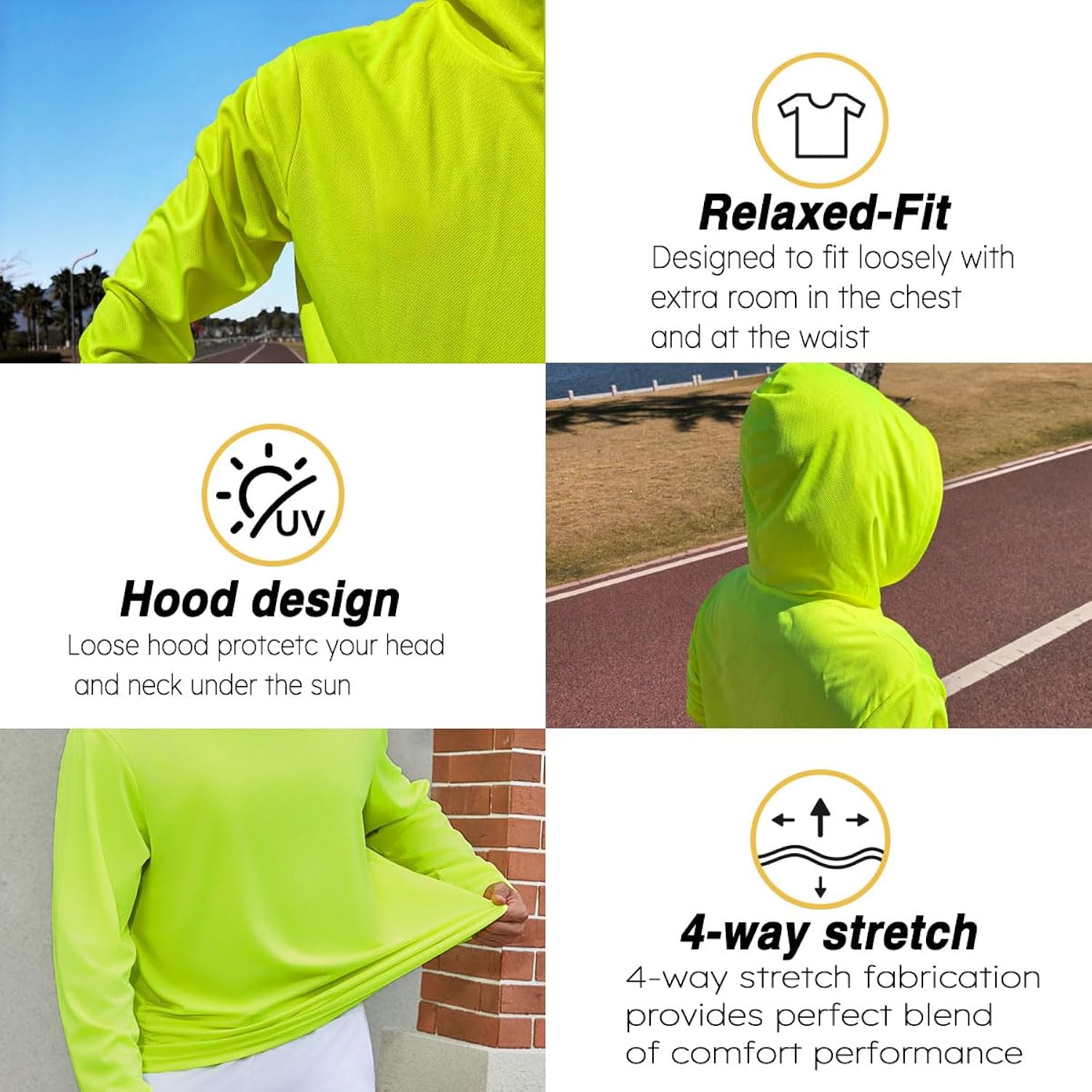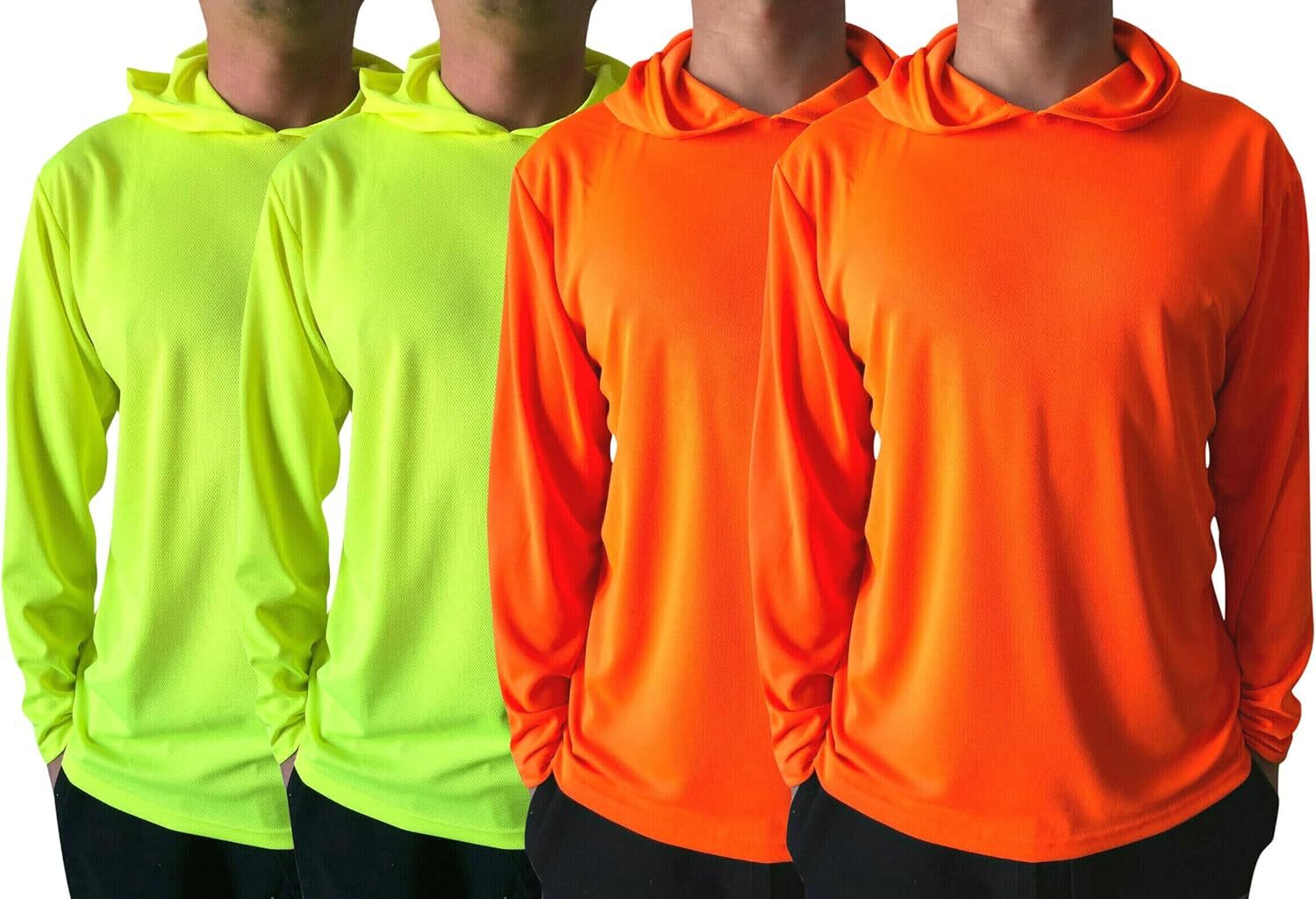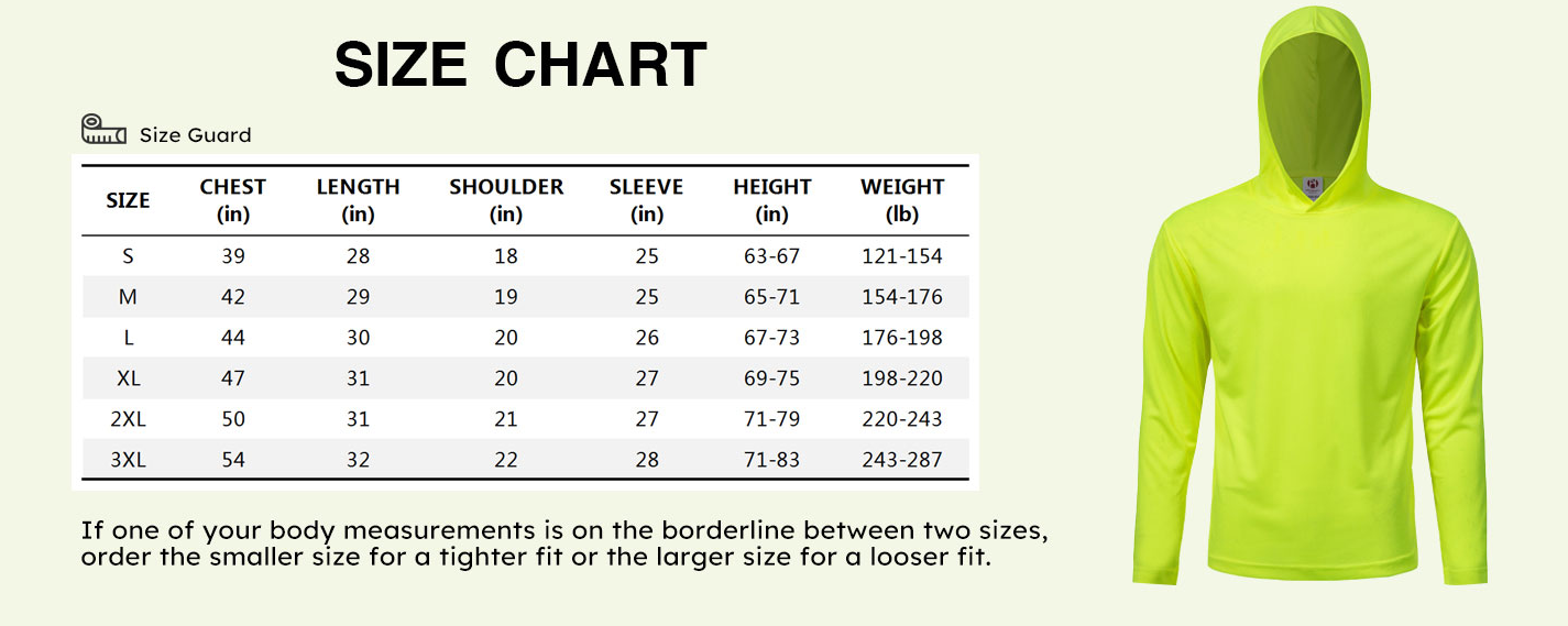 - UPF 50+ UV Sun Protection long sleeve shirt come with hood for extra protect from the sun. Neon lime and Neon Orange Color for high level of visibility.