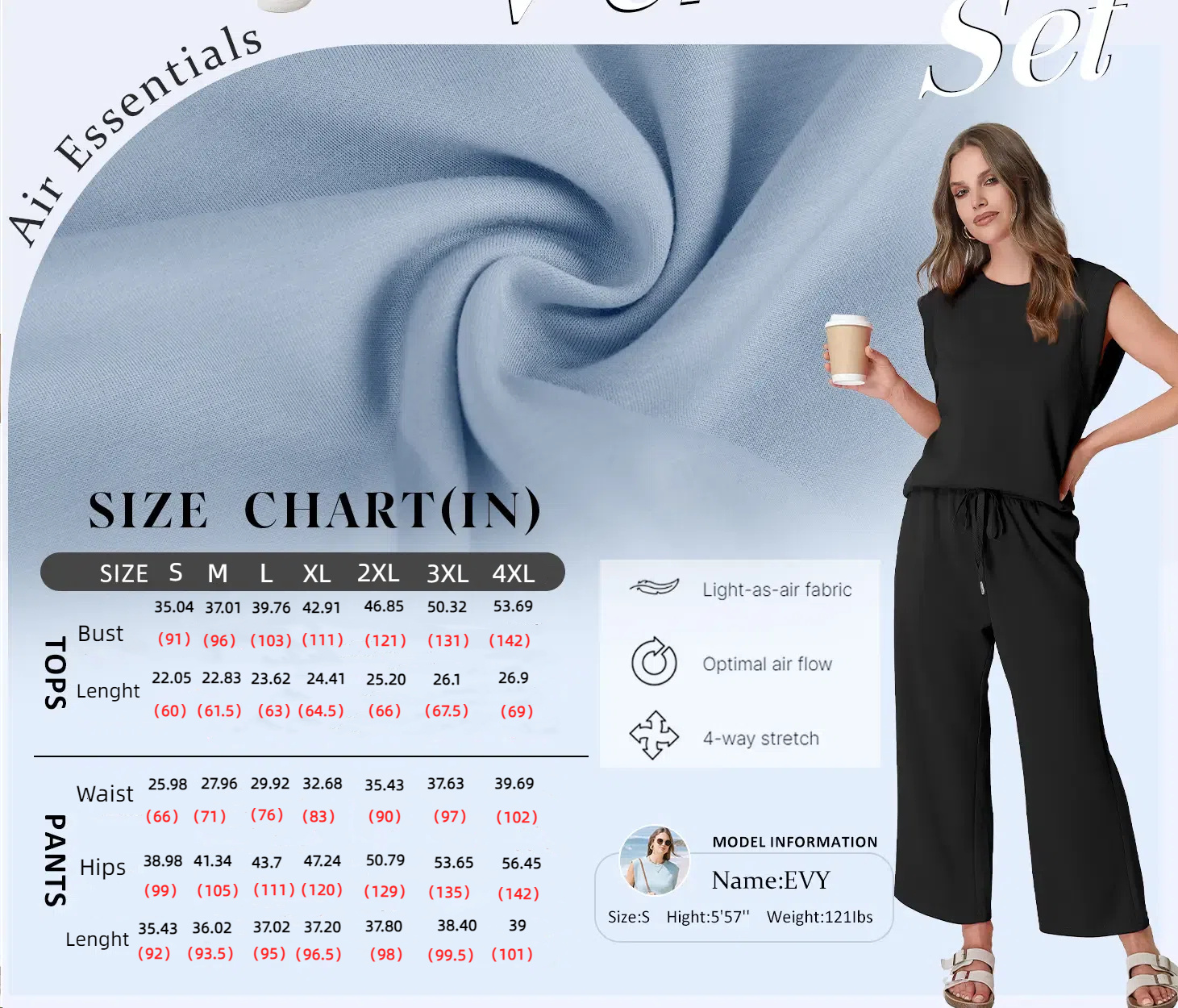 - Fabric: 70%Cotton,23%Rayon,7%Spandex. Light-as-air fabric/Optimal air flow/4-way stretch/wrinkle free,The Two Piece is made with spacer fabric that’s lightweight, soft and ultra drapey, designed to feel silky against your skin.