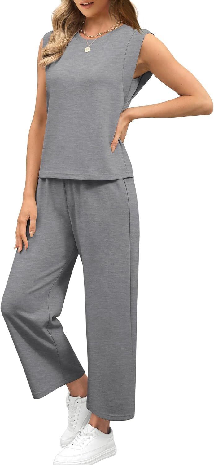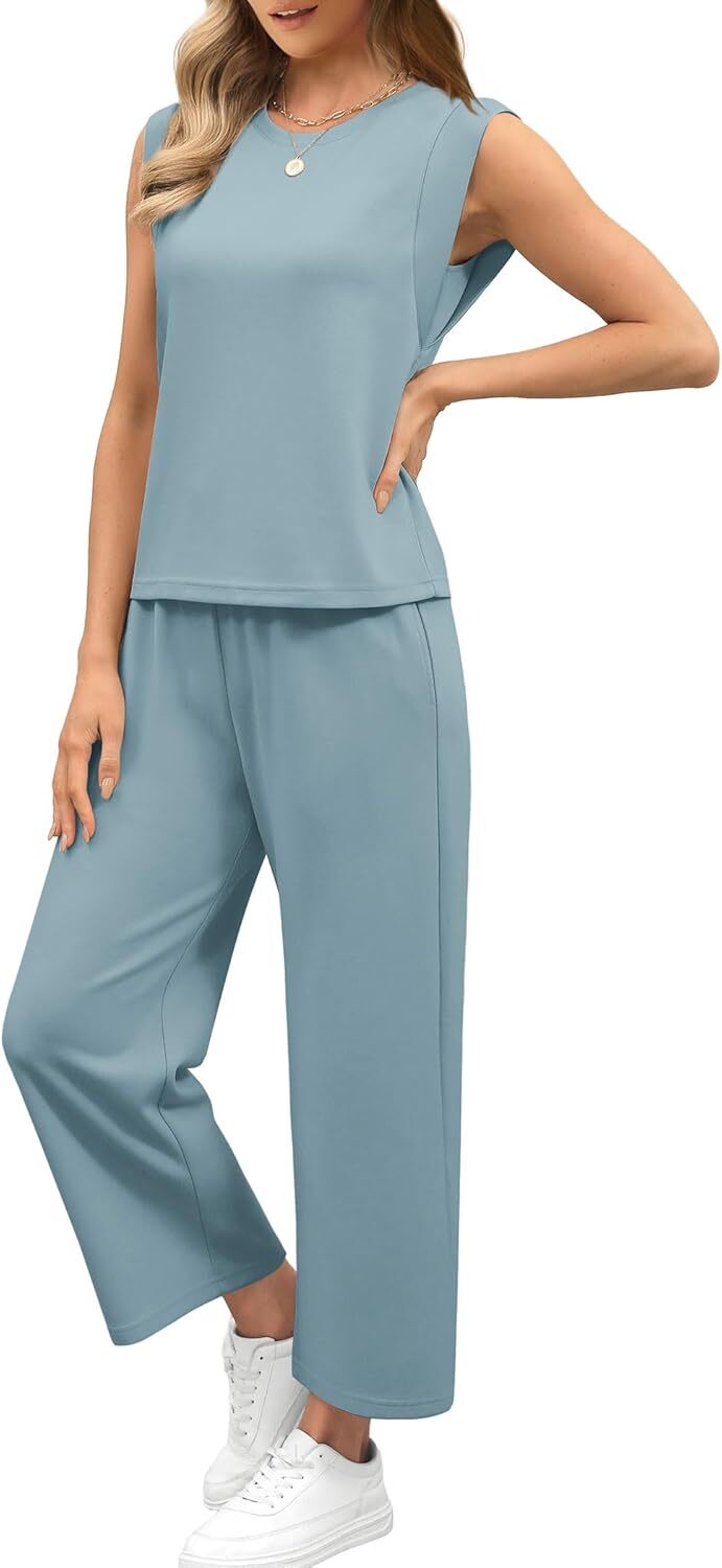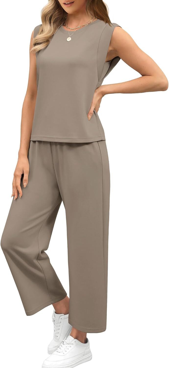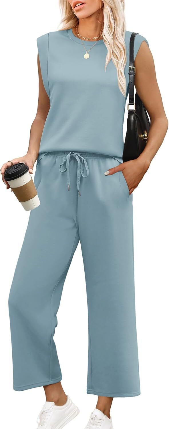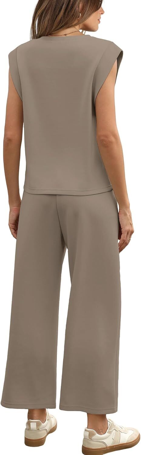 - Top: This travel outfits for women 2 piece sets are Crewneck tops/ sleeveless tops/ This basic cute loose top is long enough to hide your belly,and the extra lining design allows you to prevent exposure and travel easily.