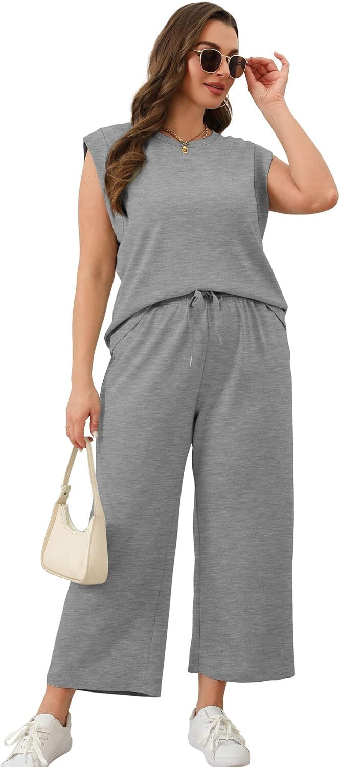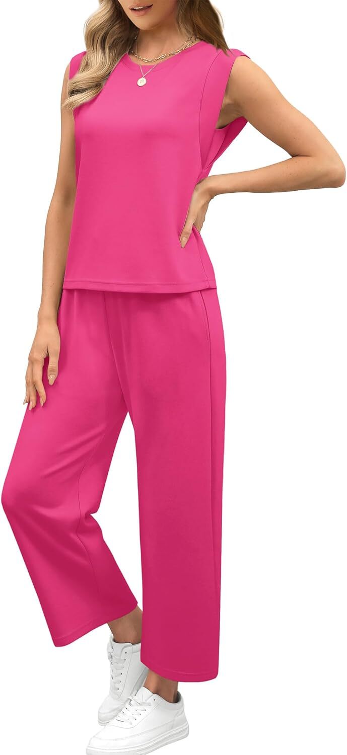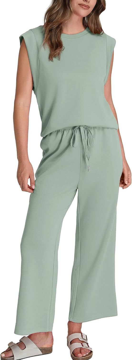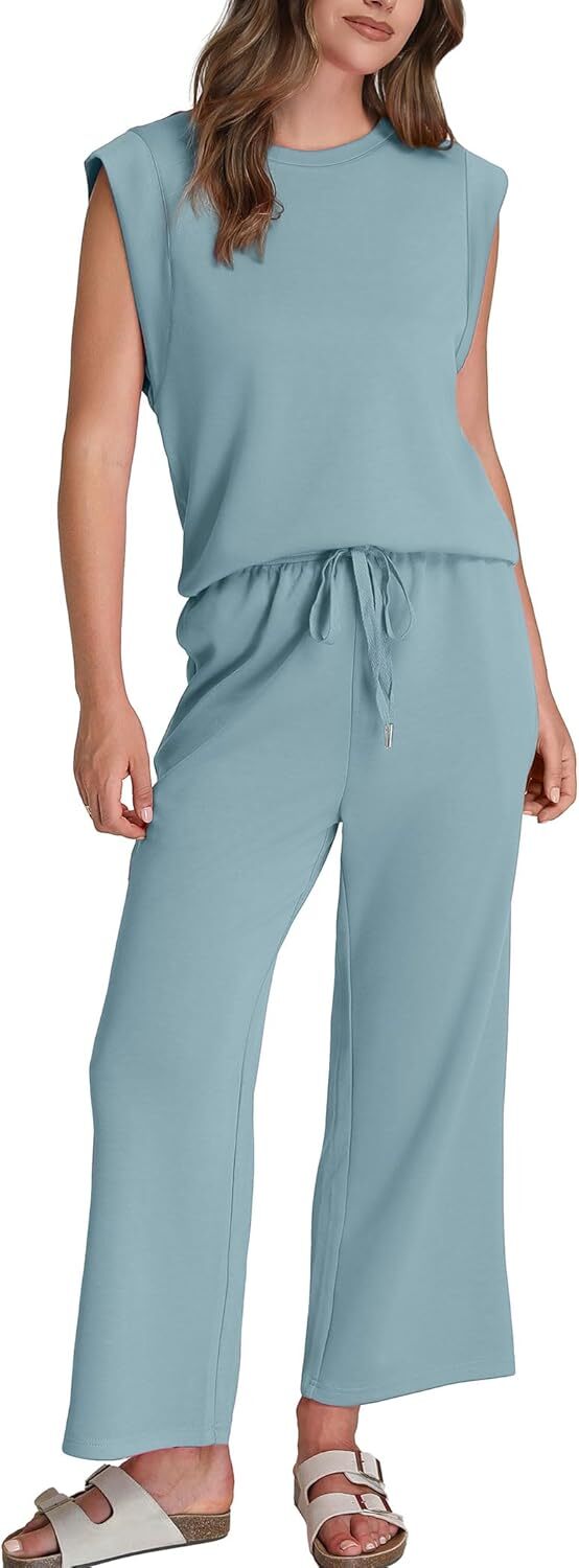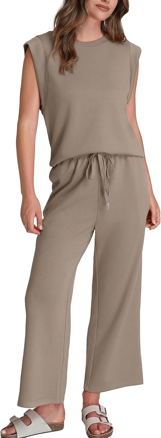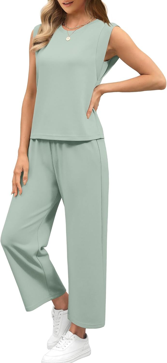 - Top: This travel outfits for women 2 piece sets are Crewneck tops/ sleeveless tops/ This basic cute loose top is long enough to hide your belly,and the extra lining design allows you to prevent exposure and travel easily.