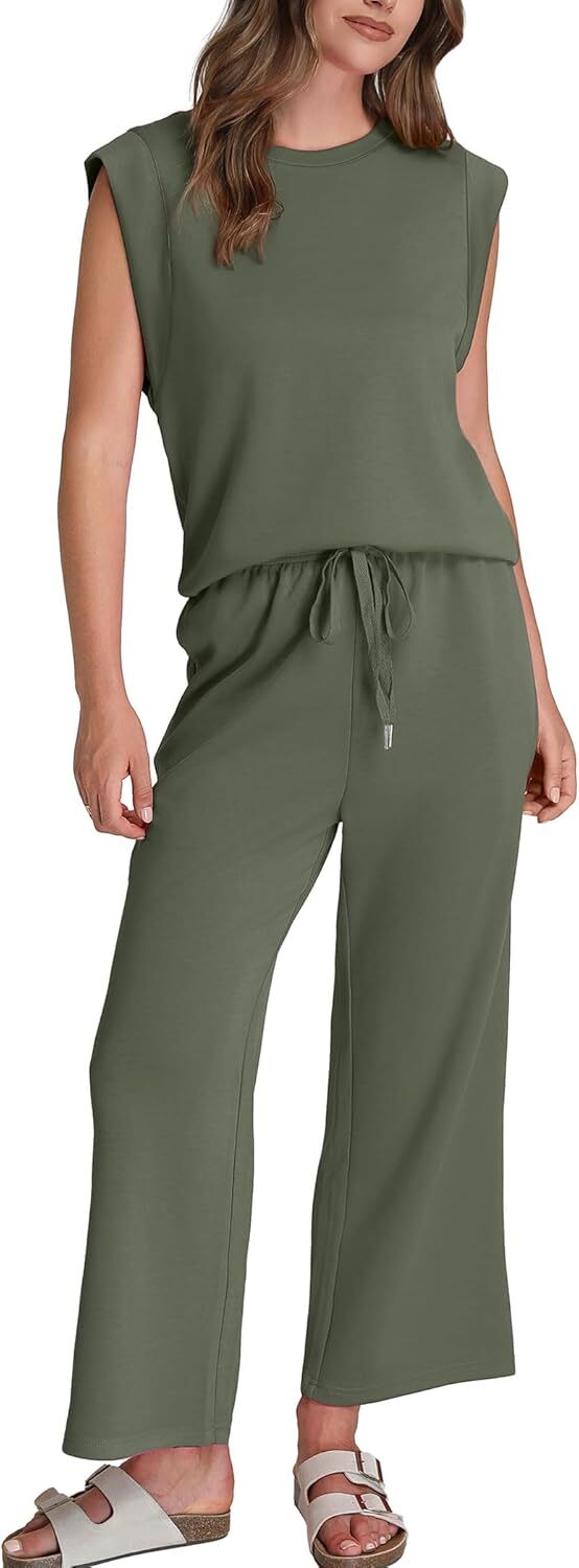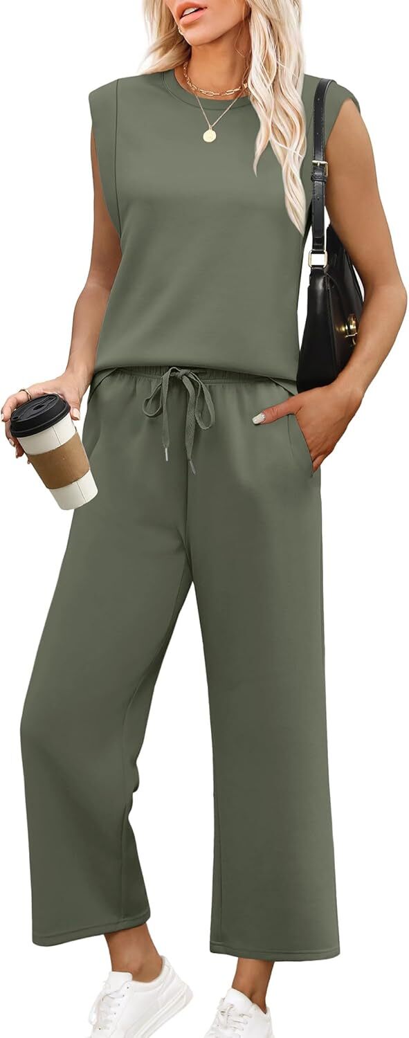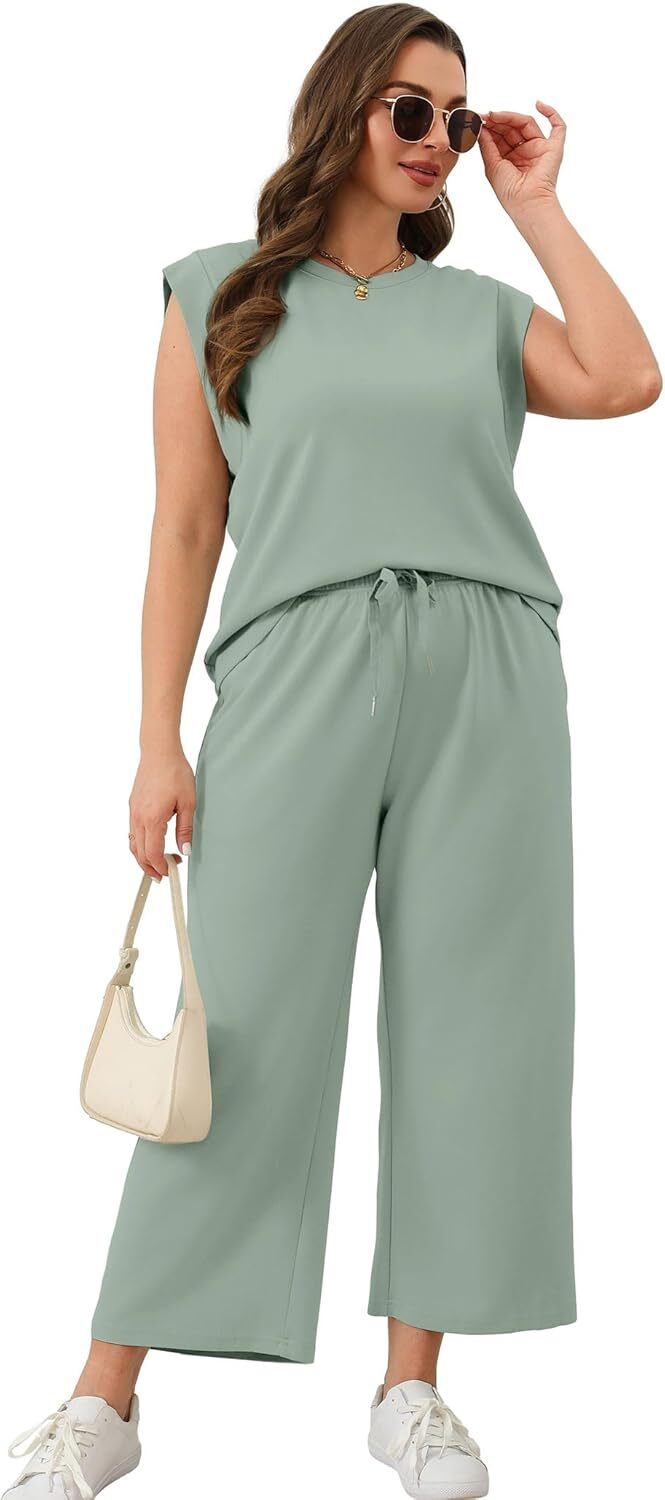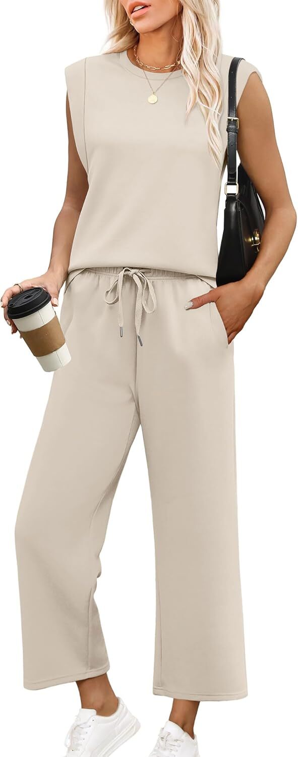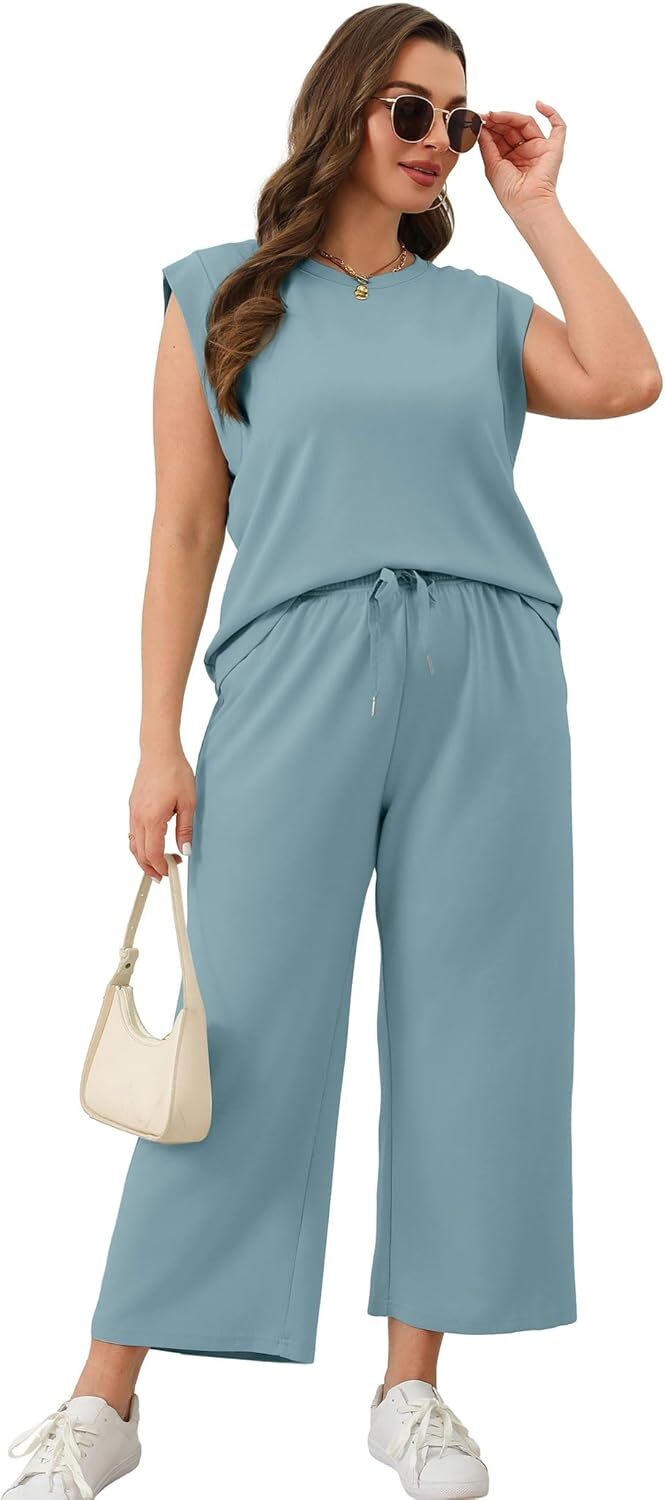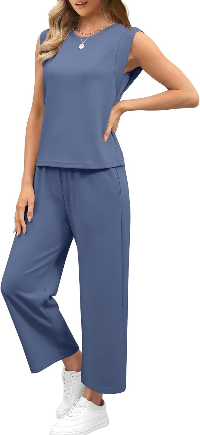 - Top: This travel outfits for women 2 piece sets are Crewneck tops/ sleeveless tops/ This basic cute loose top is long enough to hide your belly,and the extra lining design allows you to prevent exposure and travel easily.