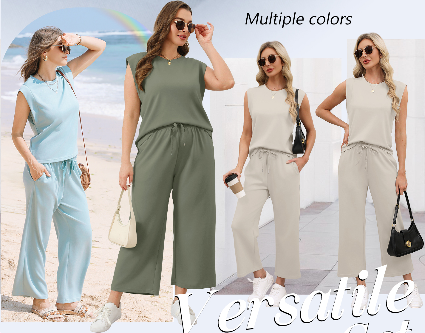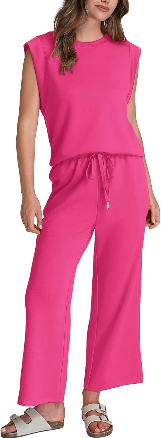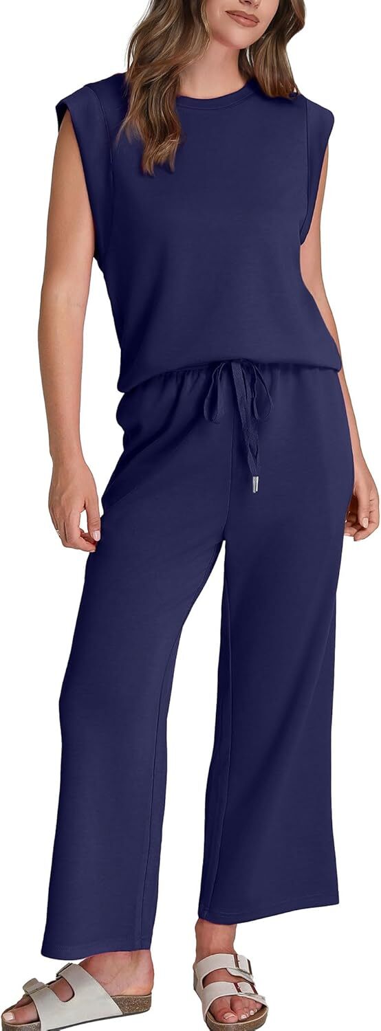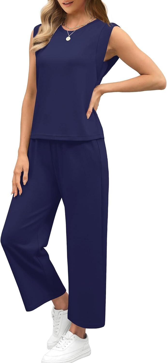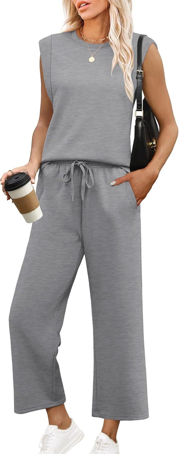 - Top: This travel outfits for women 2 piece sets are Crewneck tops/ sleeveless tops/ This basic cute loose top is long enough to hide your belly,and the extra lining design allows you to prevent exposure and travel easily.