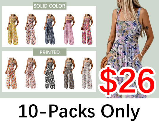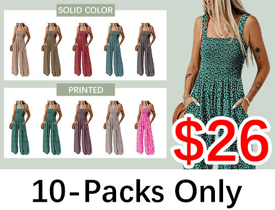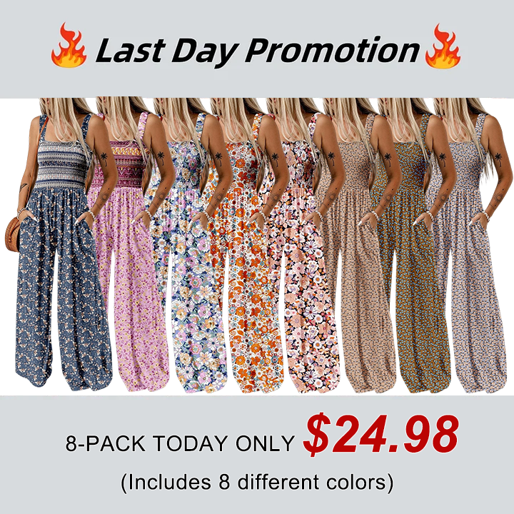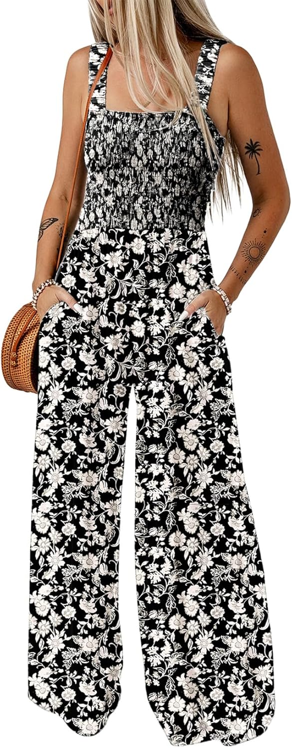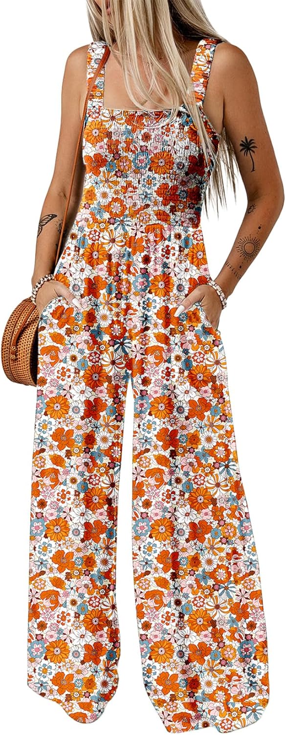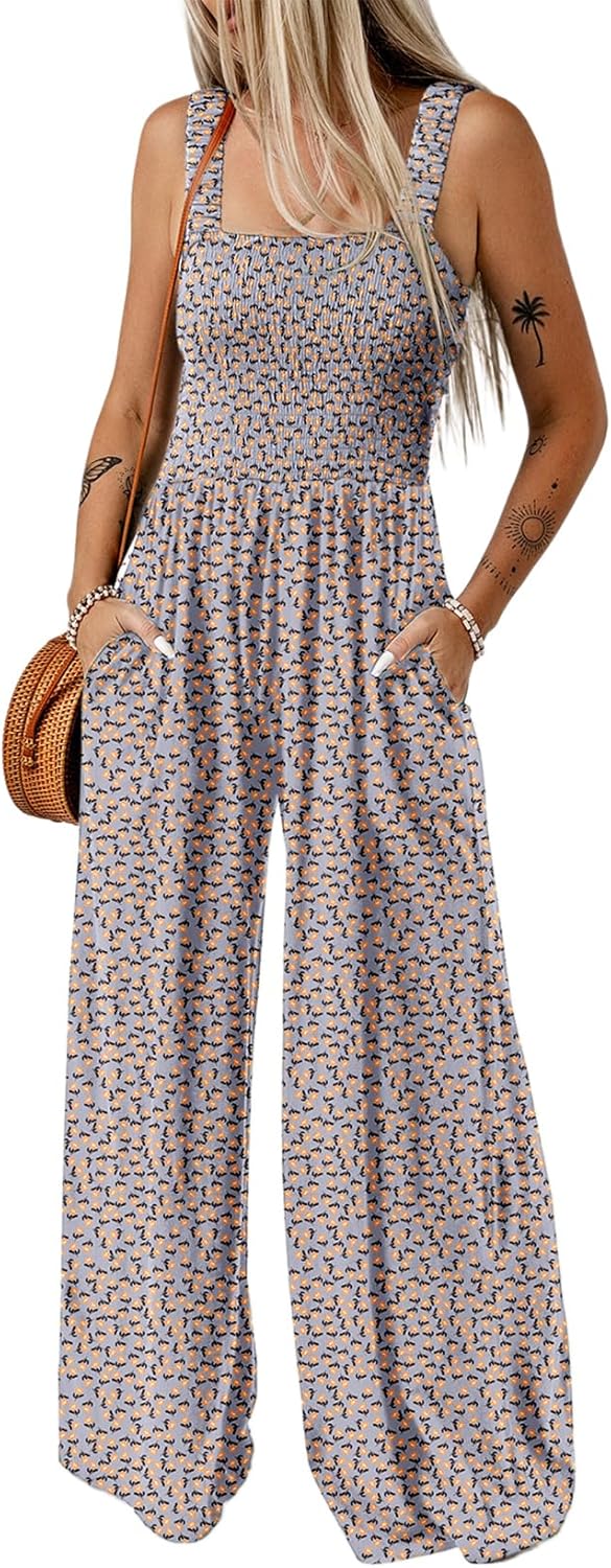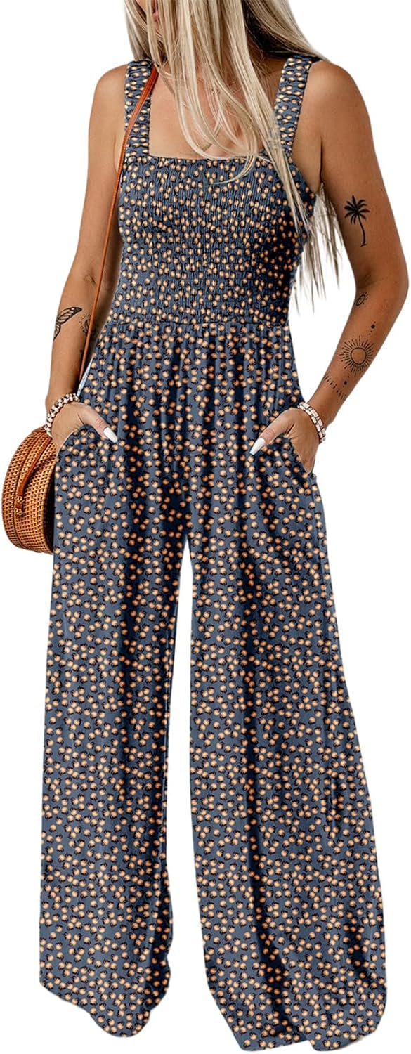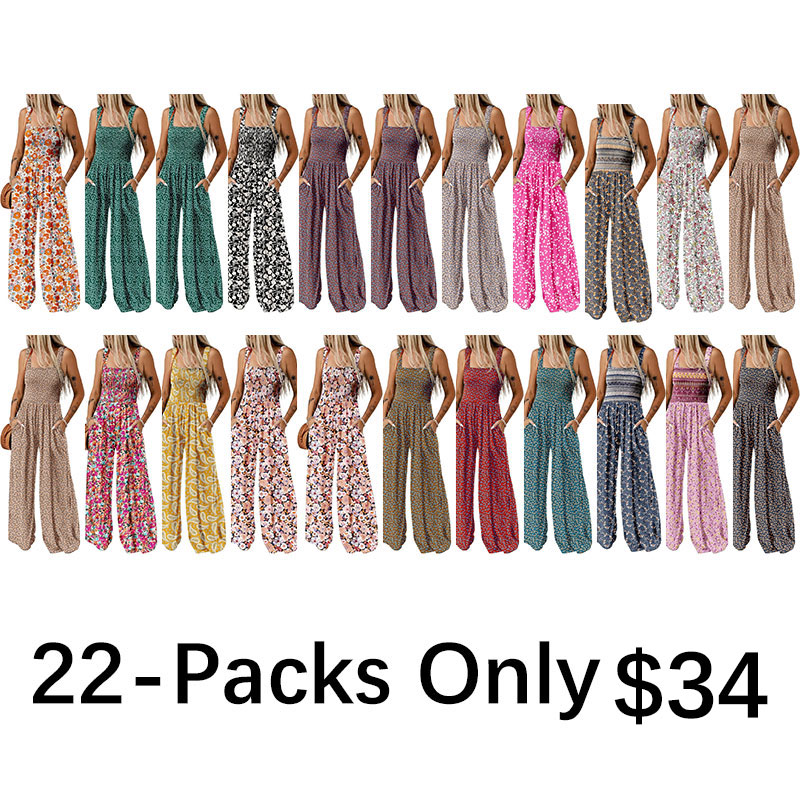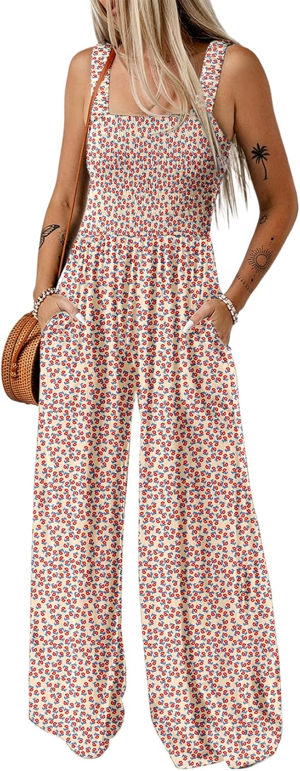 Womens Wide Leg One Piece Sleeveless Printed Jumpsuit Long Pant Rompers