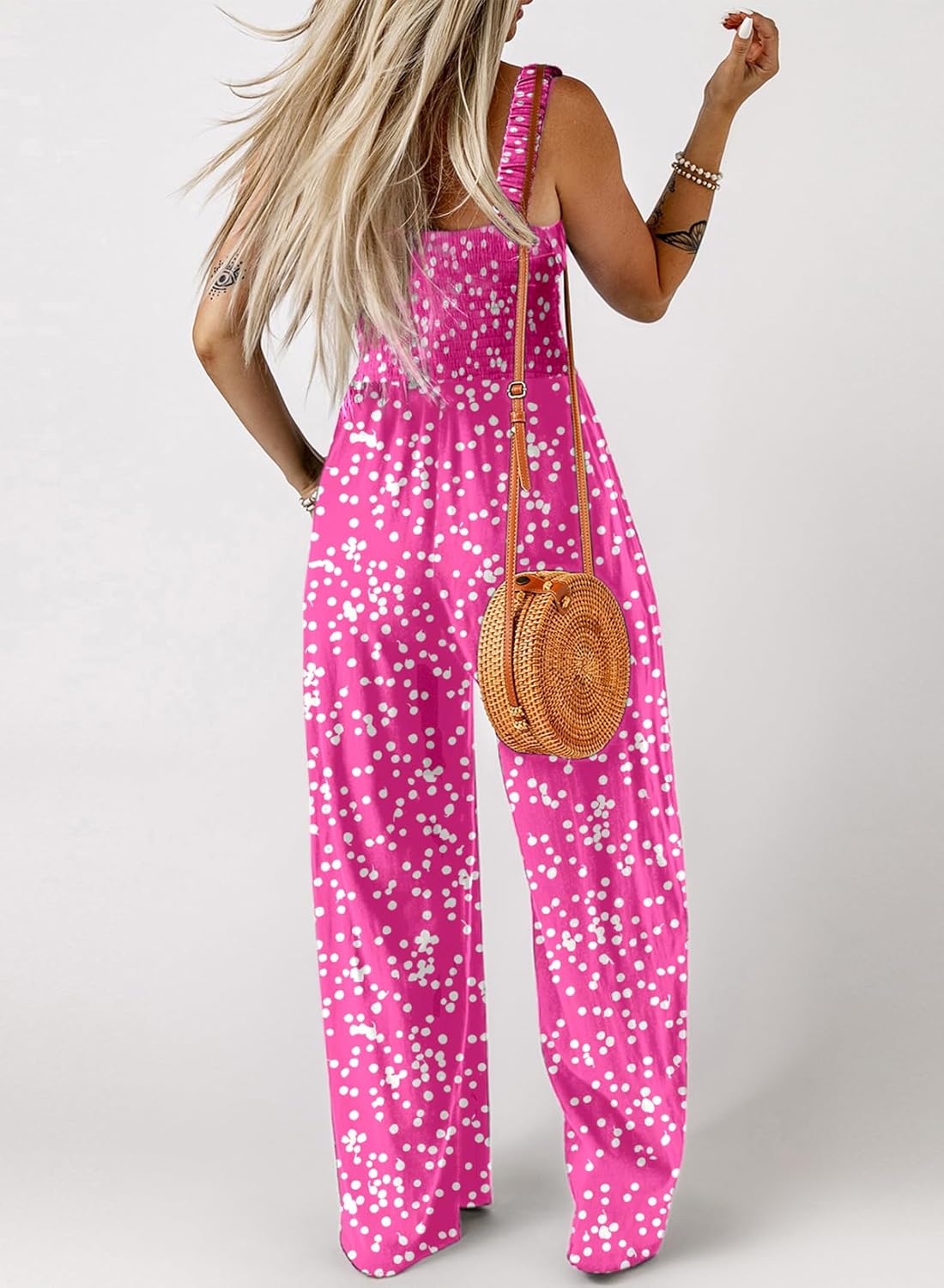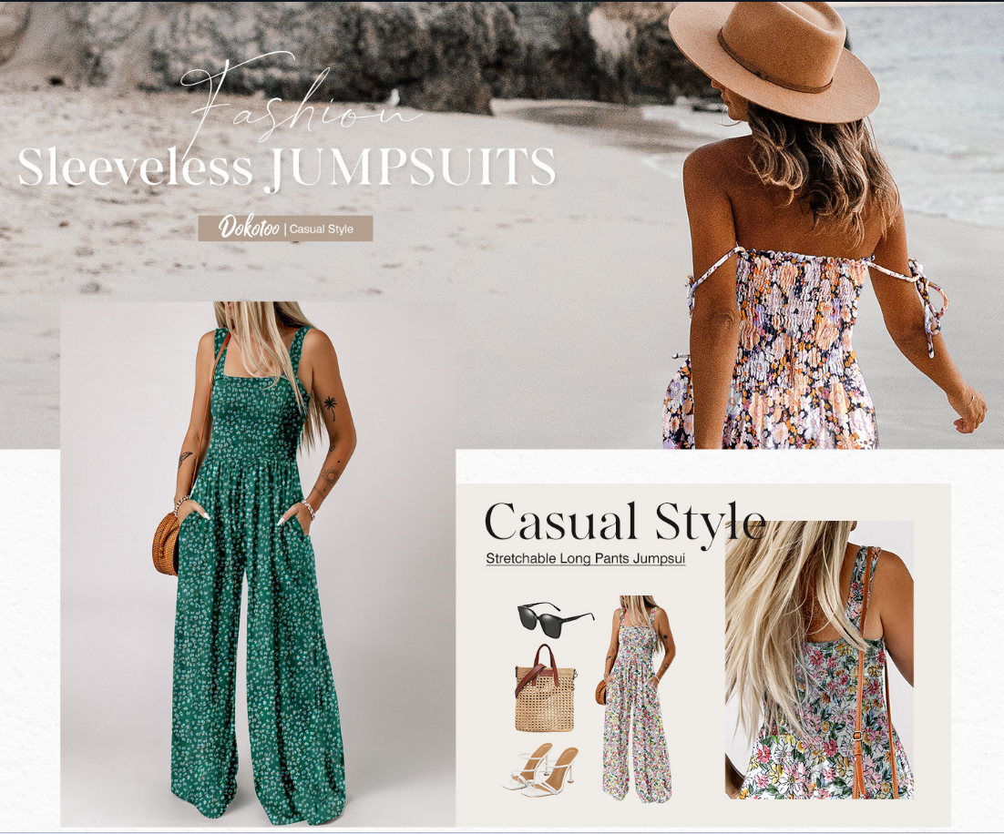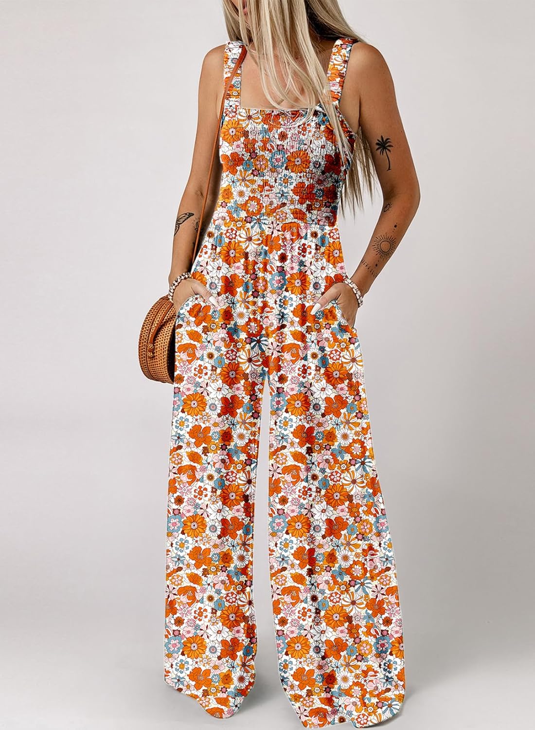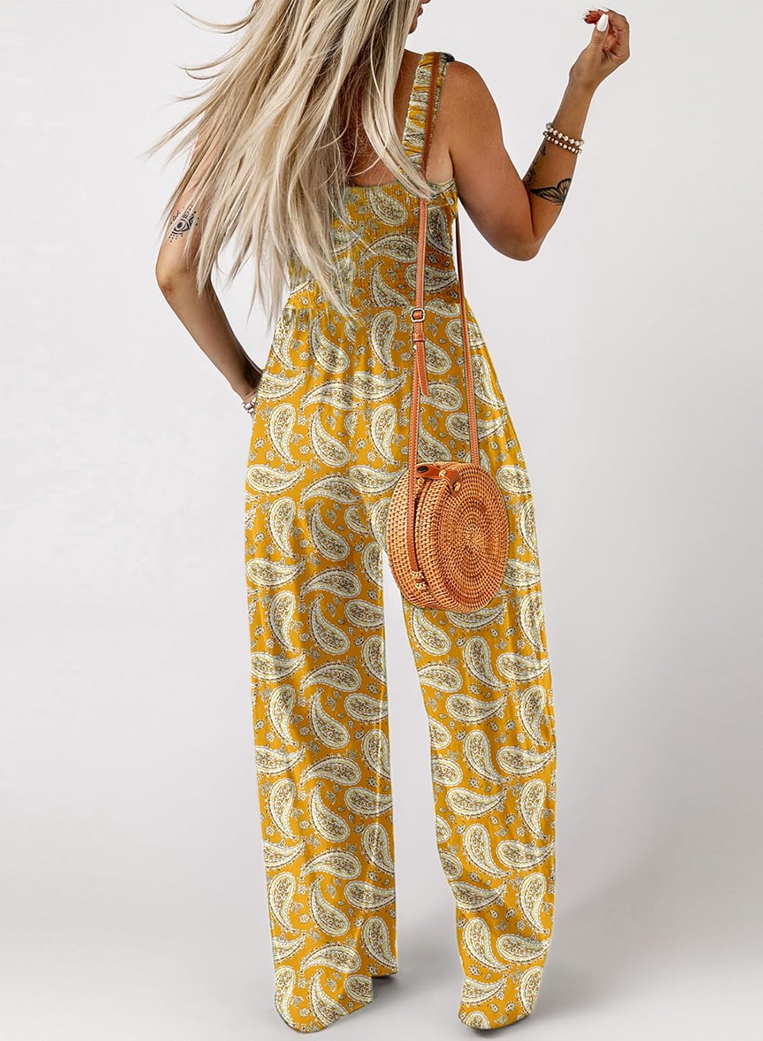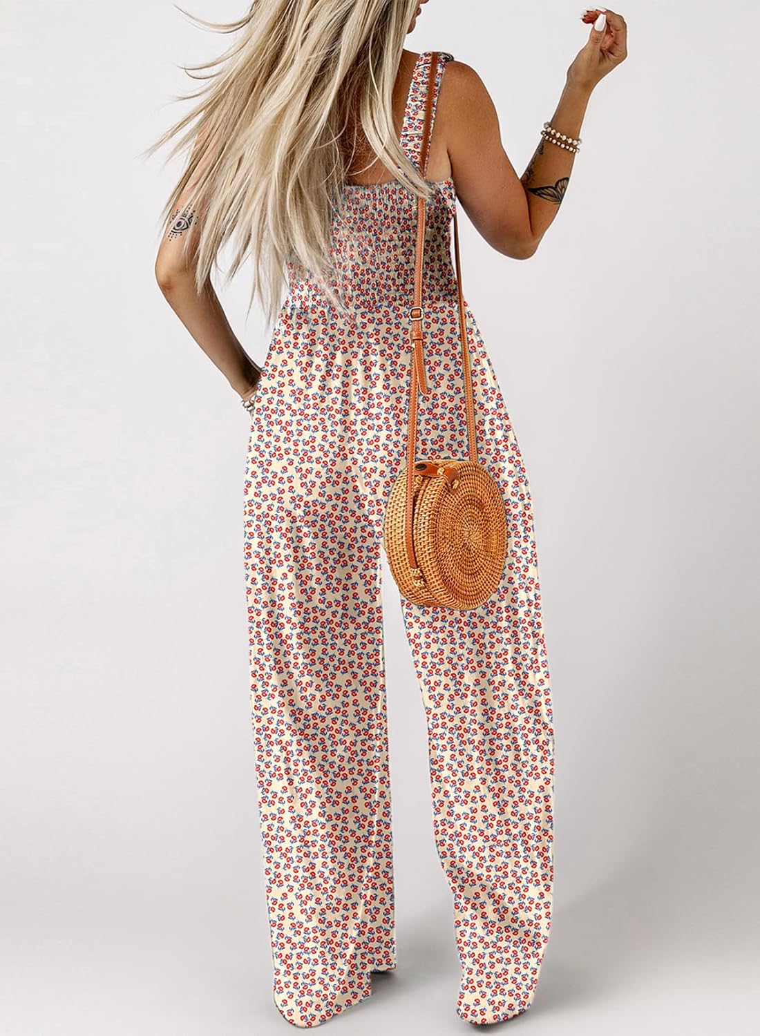 Womens Wide Leg One Piece Sleeveless Printed Jumpsuit Long Pant Rompers