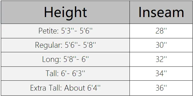 SIZE CHART(inch)