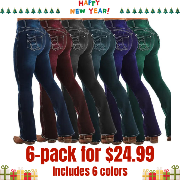 Clearance sale🔥 High-waisted flared denim pants in multiple colors—6 packs for only $24.99!