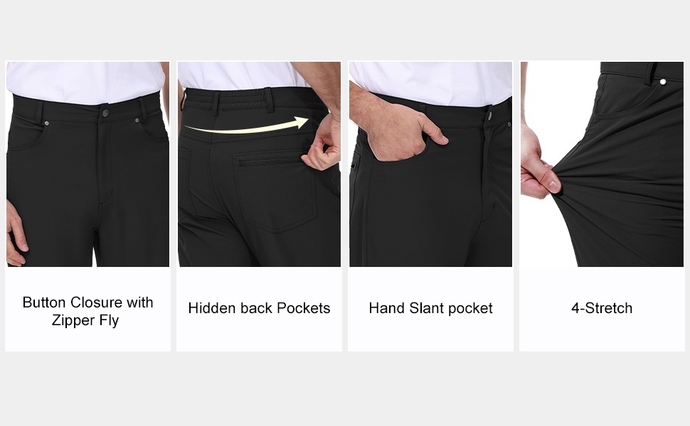 - stretch slim tapered cut makes you comfortable to wear. The elastic waistband is equipped with belt loops and zipper placket, which is suitable for people of most heights and provides more space.