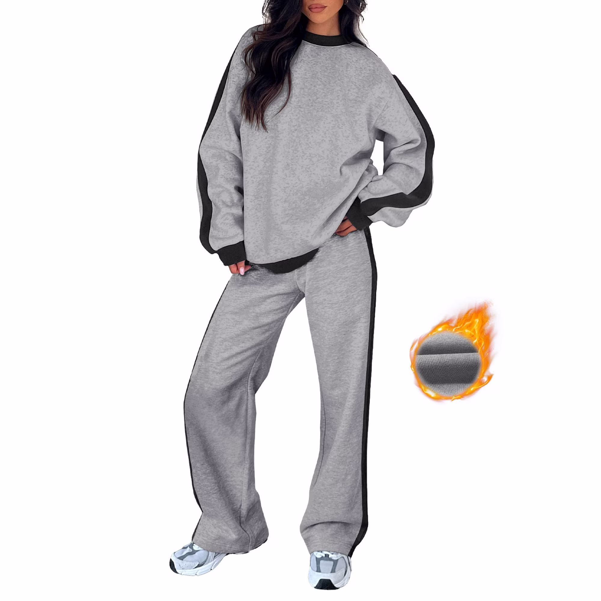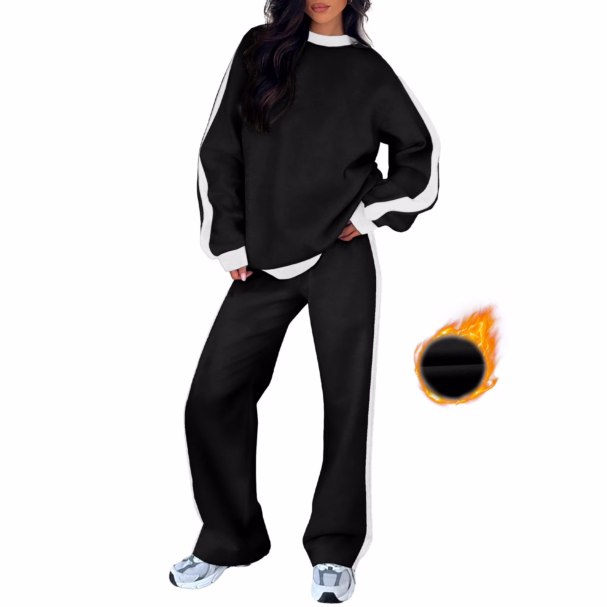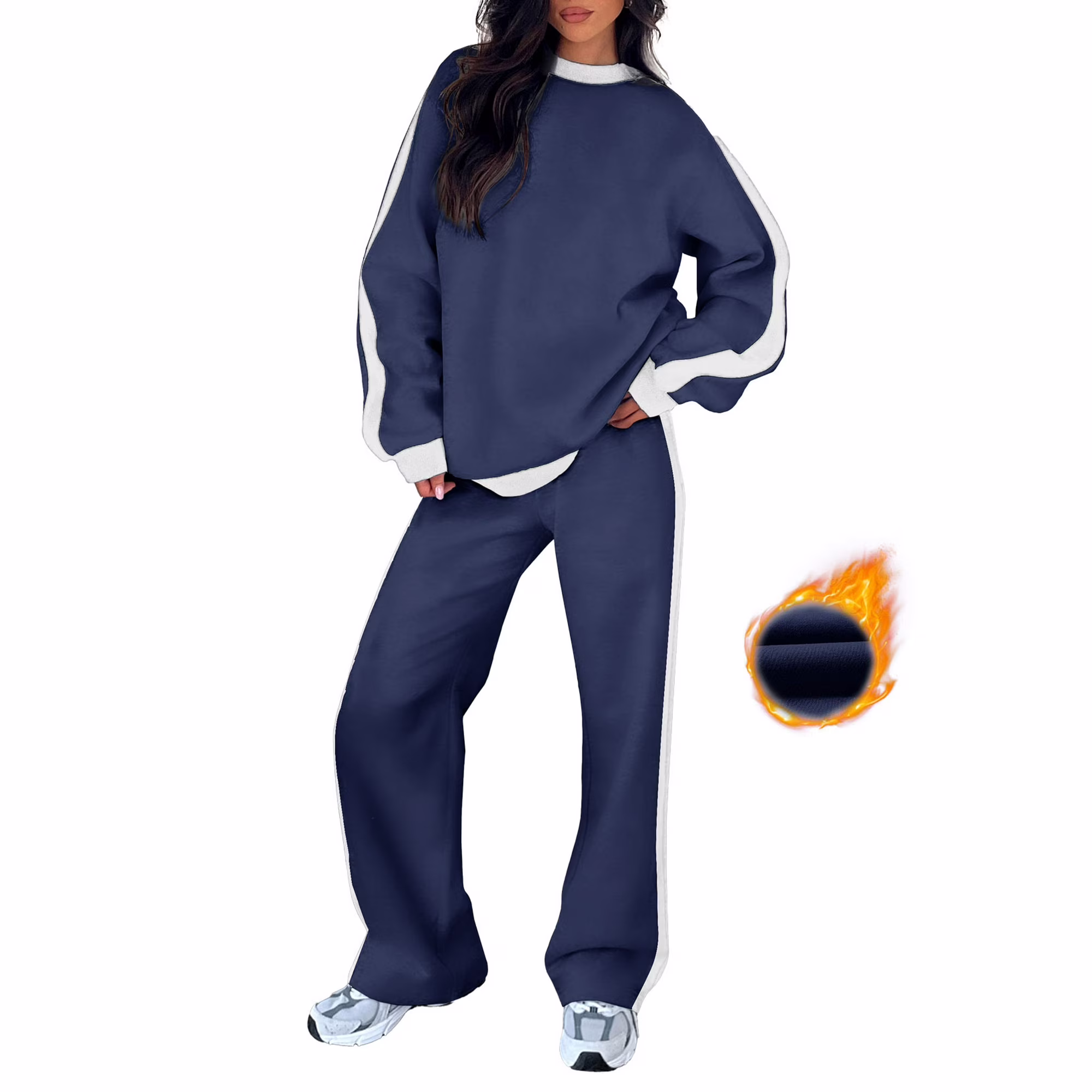 ·Cozy Fabric: Soft, slightly weighted fleece with a loose fit—ideal for fall and winter.·Classic Design: Crewneck sweatshirt with drop shoulders; high‑waist drawstring sweatpants with straight legs and side pockets.·Modern Style: Vibrant two‑piece set that’s both comfy and on‑trend.·Versatile Wear: Perfect for lounging, casual outings, hiking, workouts, yoga, dance, or travel.·Fit & Care: See size chart; allow 1–2 cm variance. Color may vary slightly by screen.