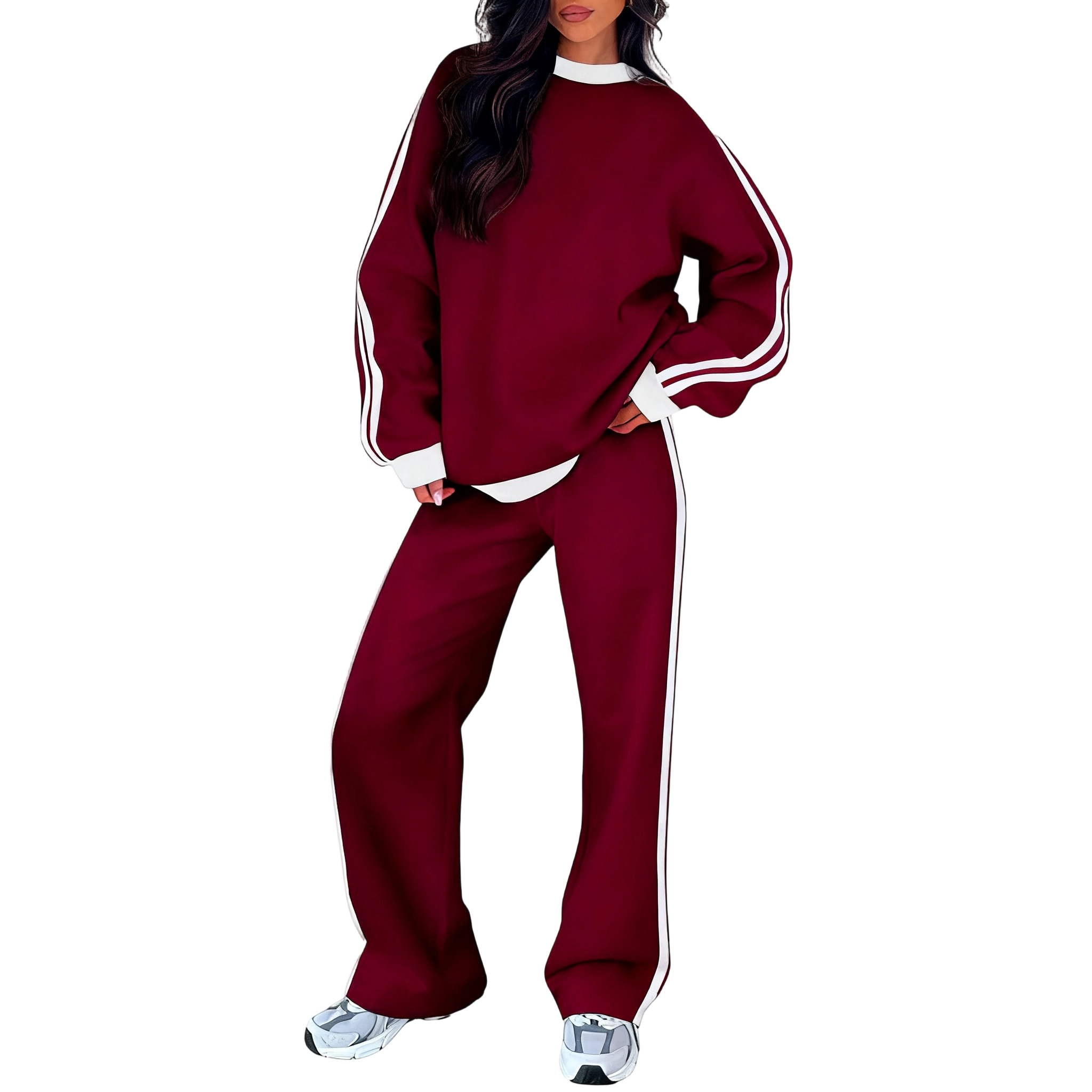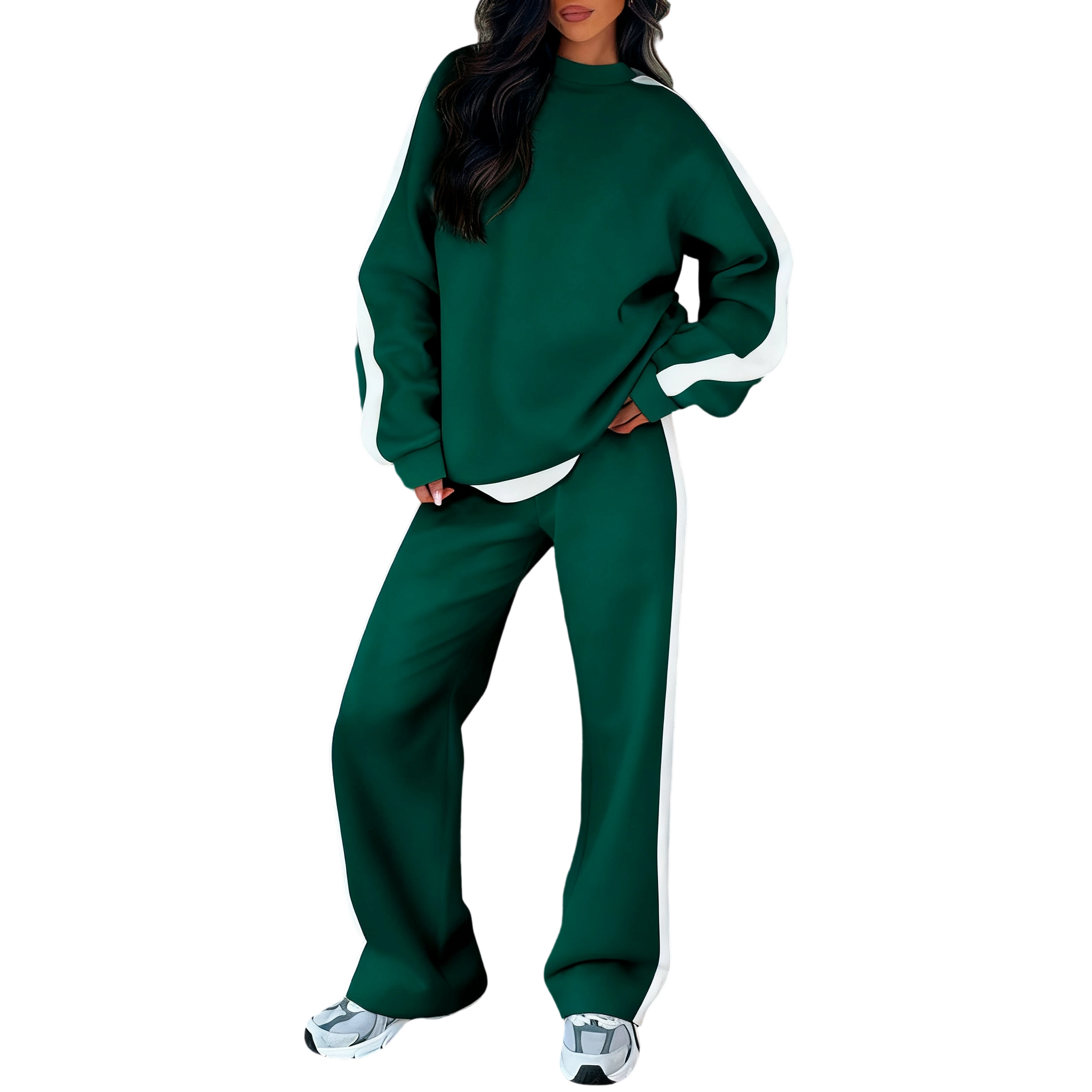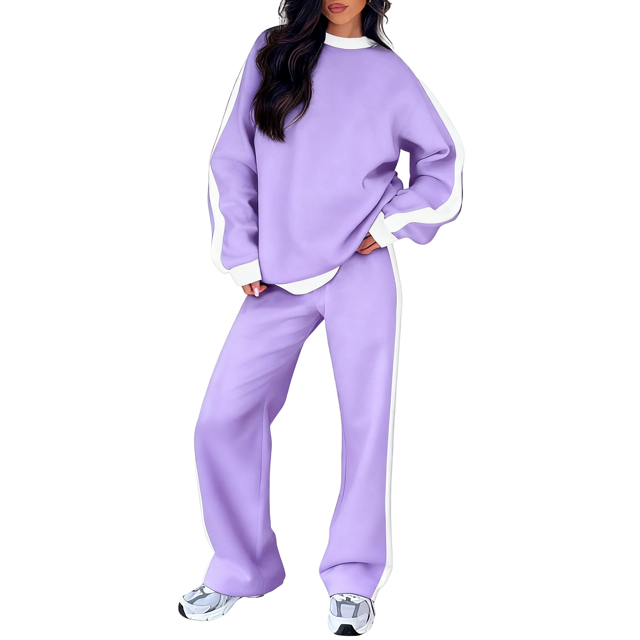 ·Cozy Fabric: Soft, slightly weighted fleece with a loose fit—ideal for fall and winter.·Classic Design: Crewneck sweatshirt with drop shoulders; high‑waist drawstring sweatpants with straight legs and side pockets.·Modern Style: Vibrant two‑piece set that’s both comfy and on‑trend.·Versatile Wear: Perfect for lounging, casual outings, hiking, workouts, yoga, dance, or travel.·Fit & Care: See size chart; allow 1–2 cm variance. Color may vary slightly by screen.