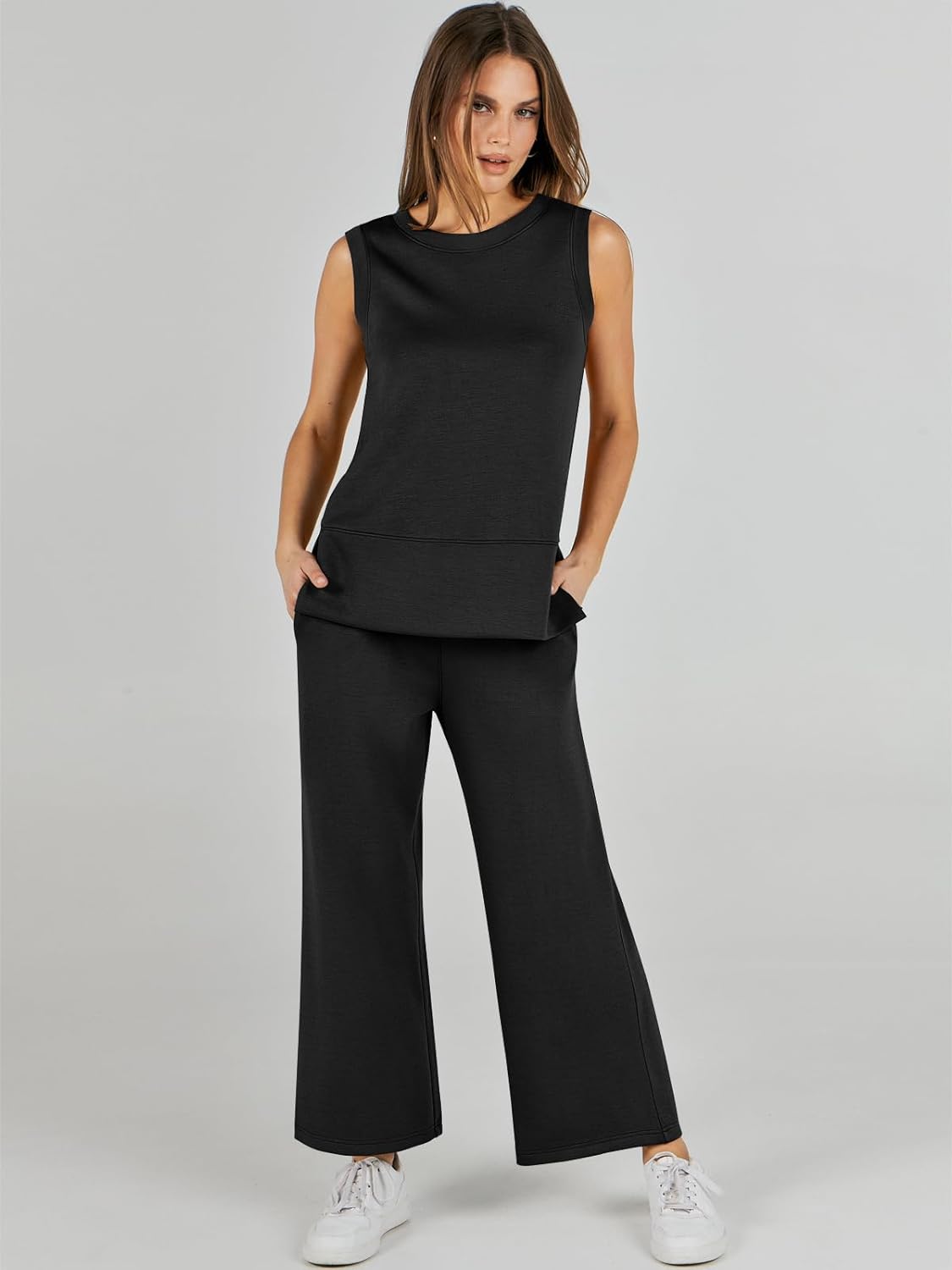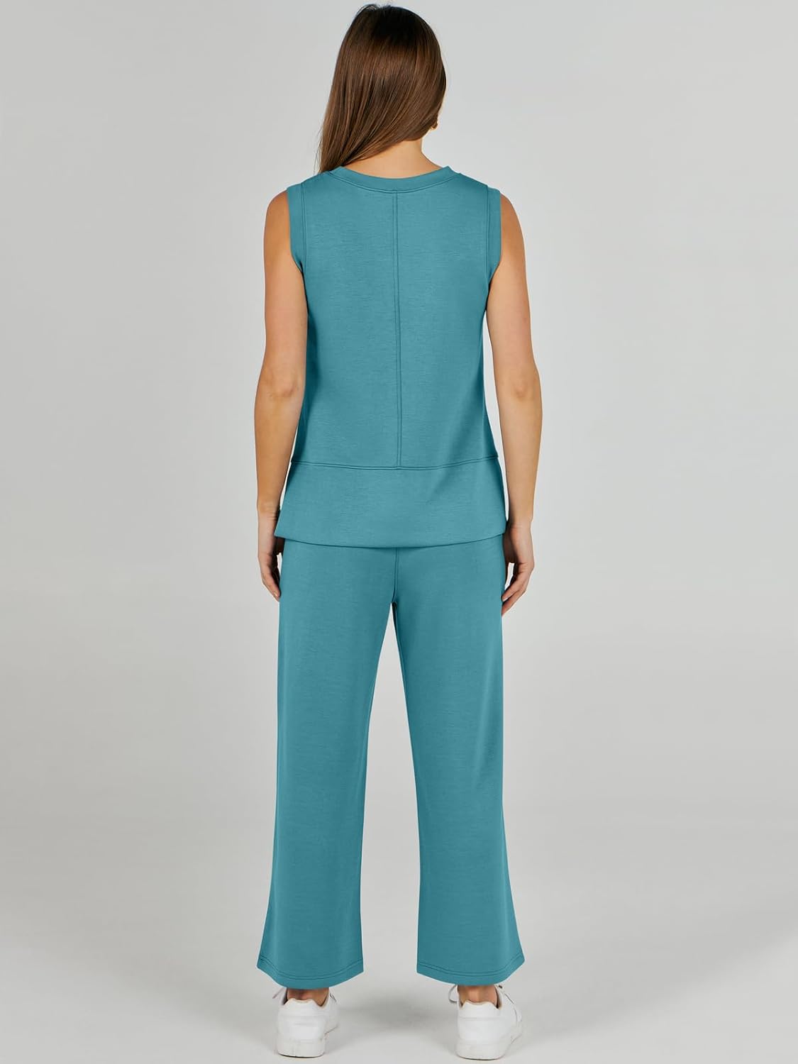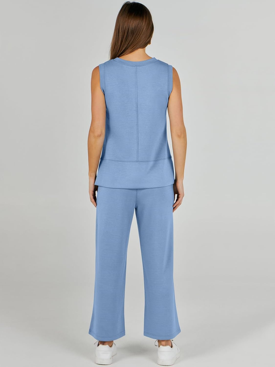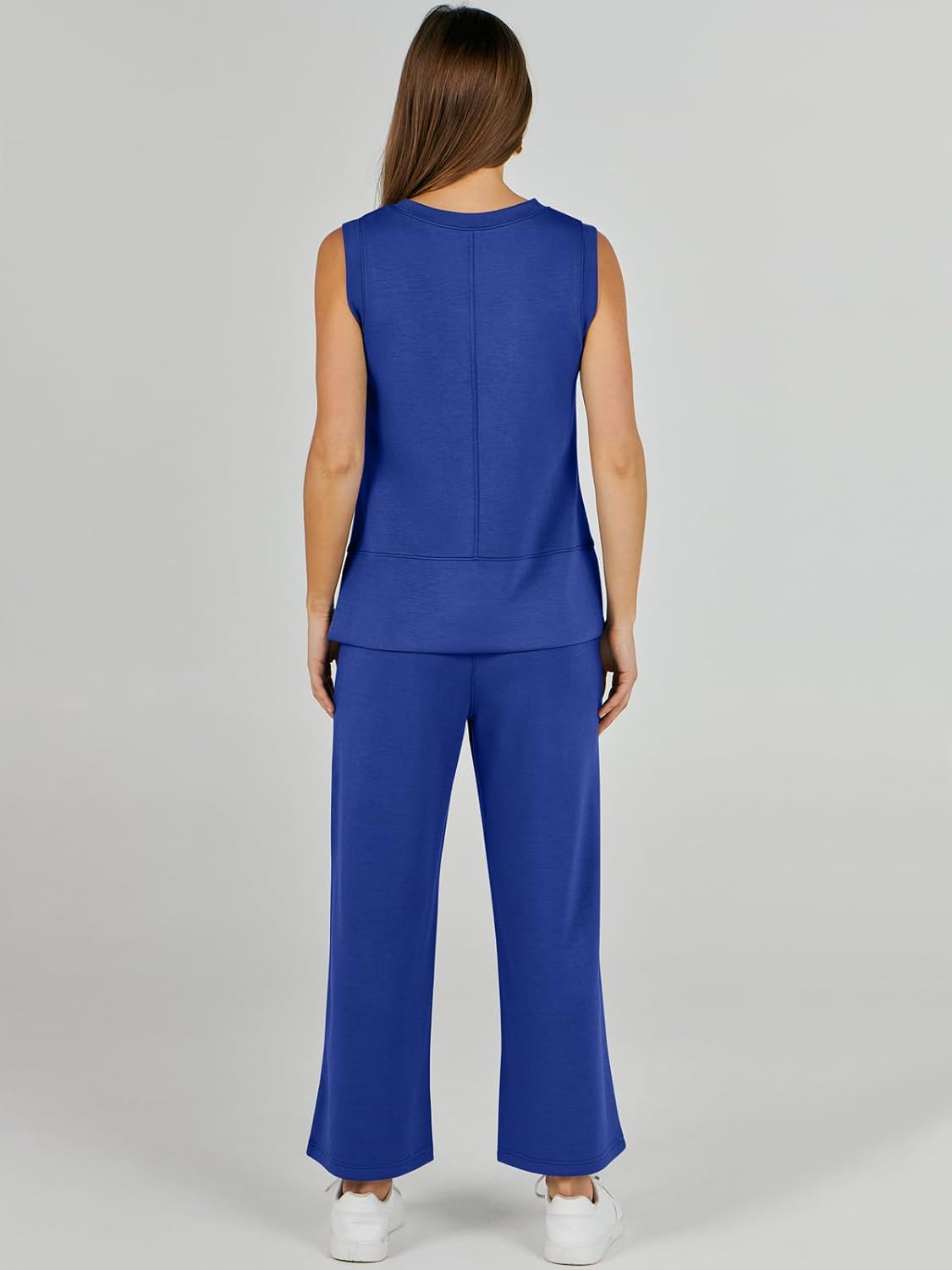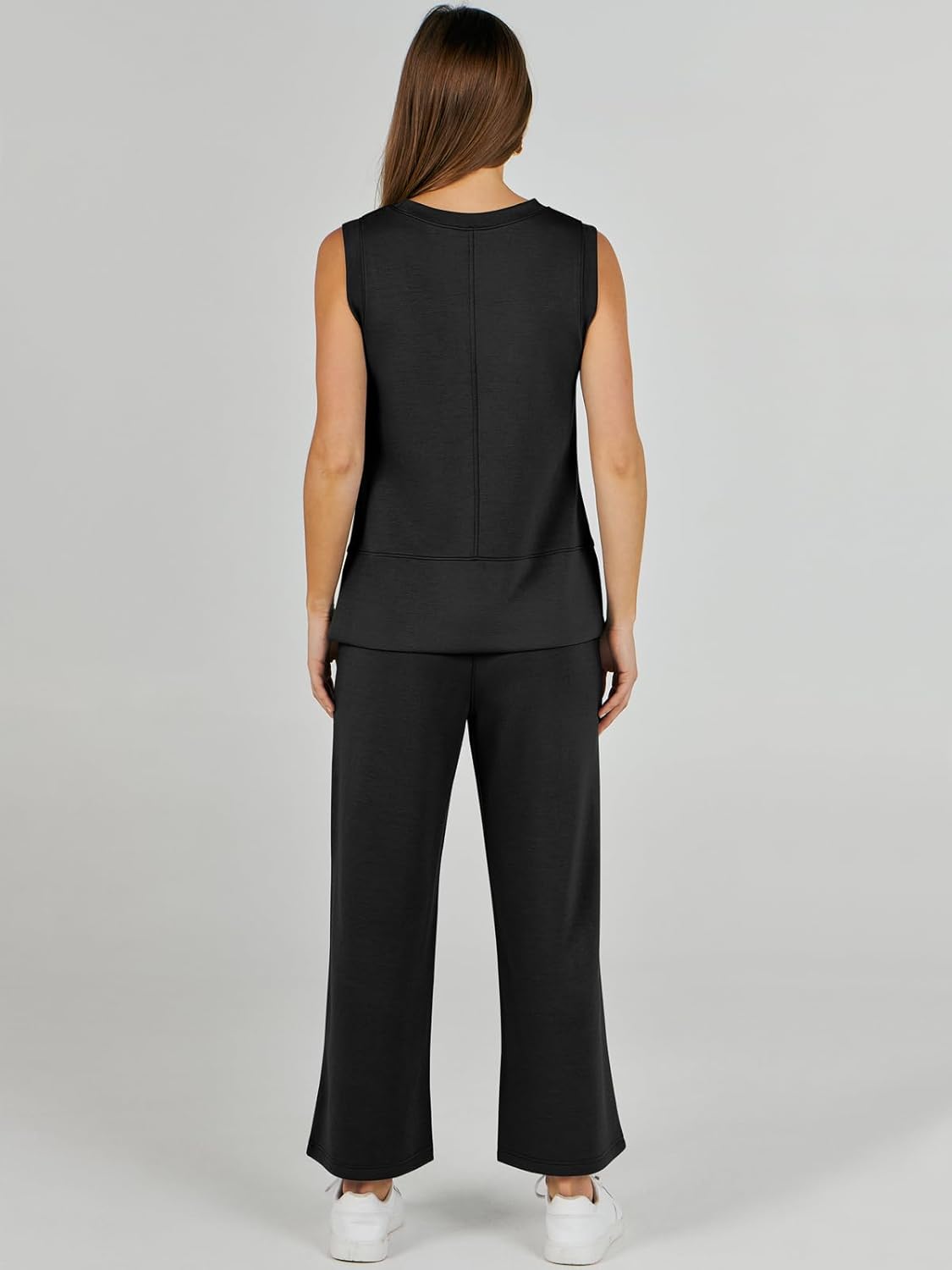 Feature --- Crewneck / Sleeveless / High Waist / Drawstring/ Wide Leg