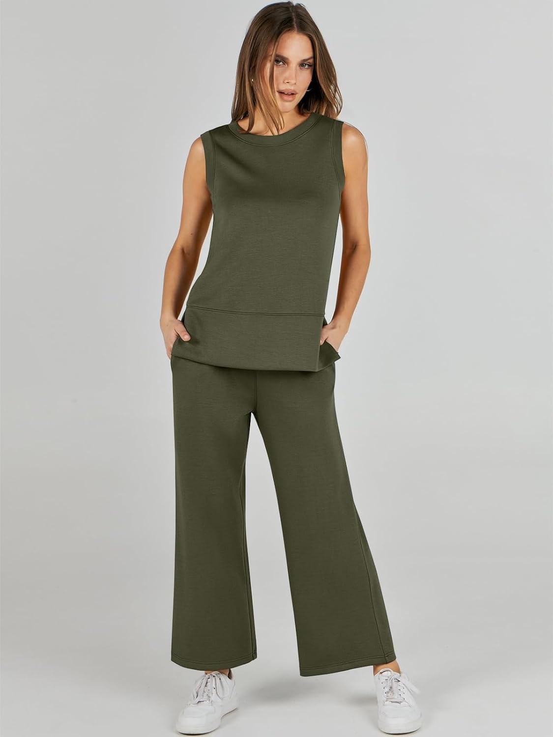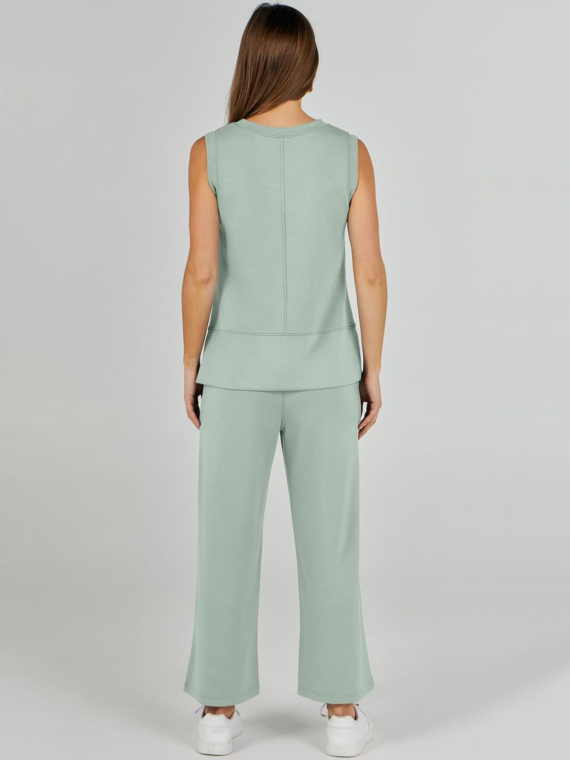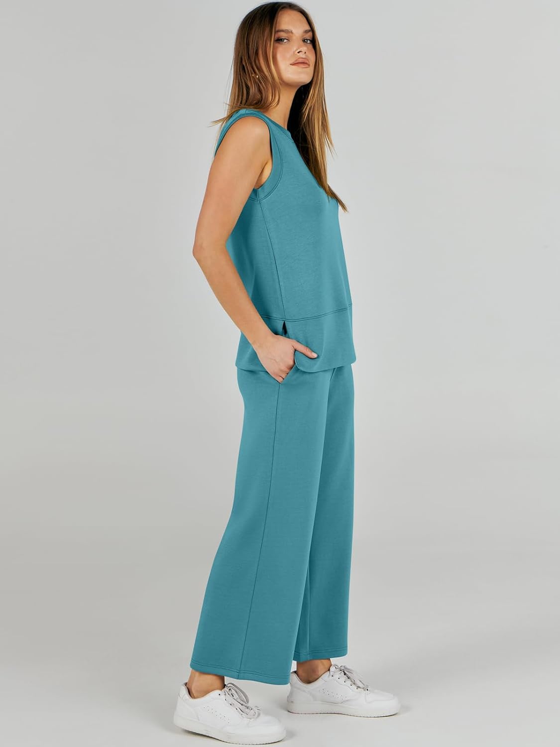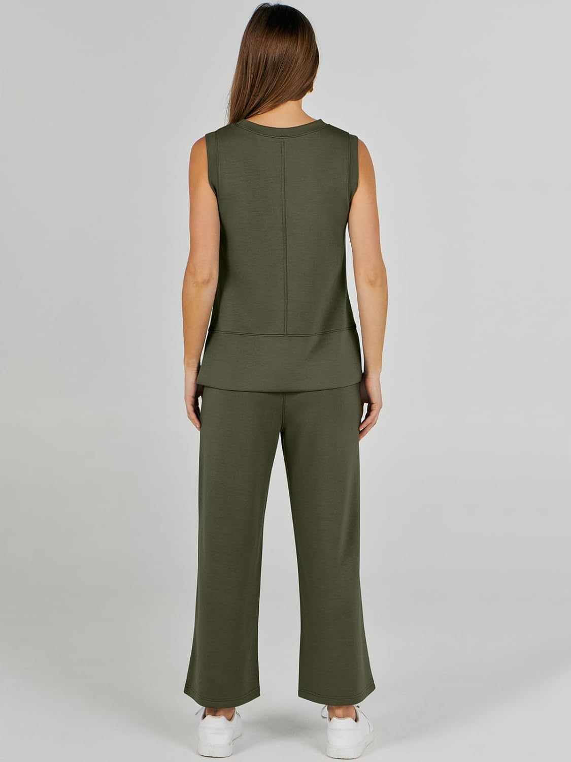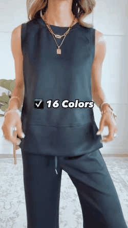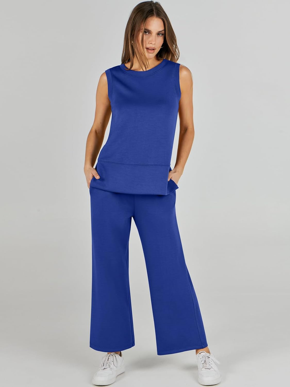 Feature --- Crewneck / Sleeveless / High Waist / Drawstring/ Wide Leg