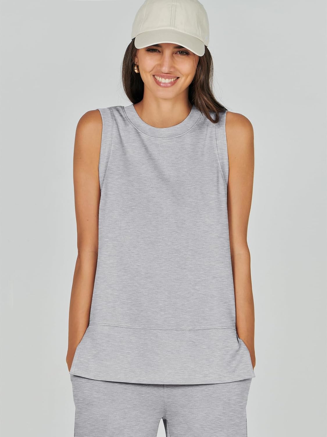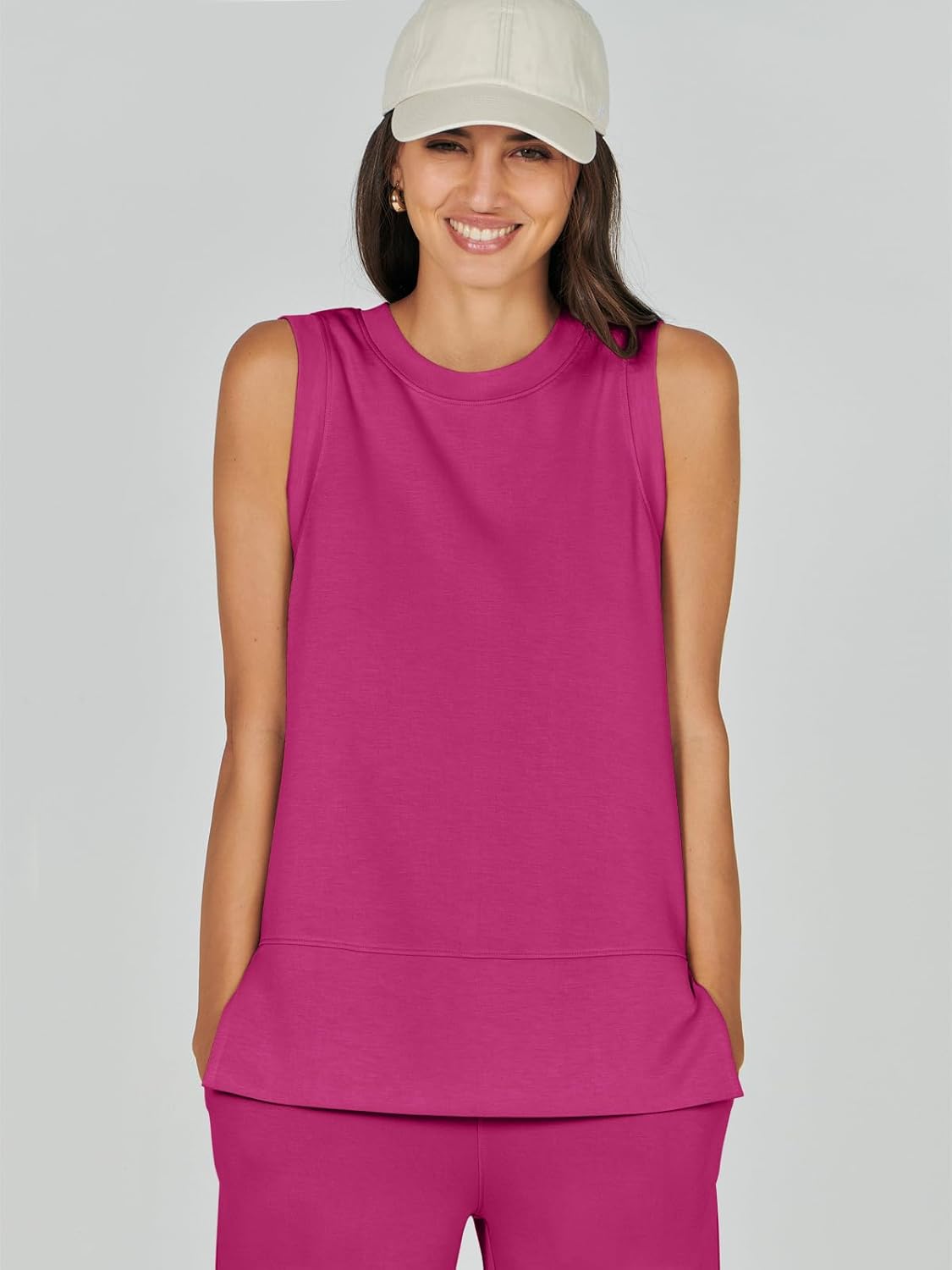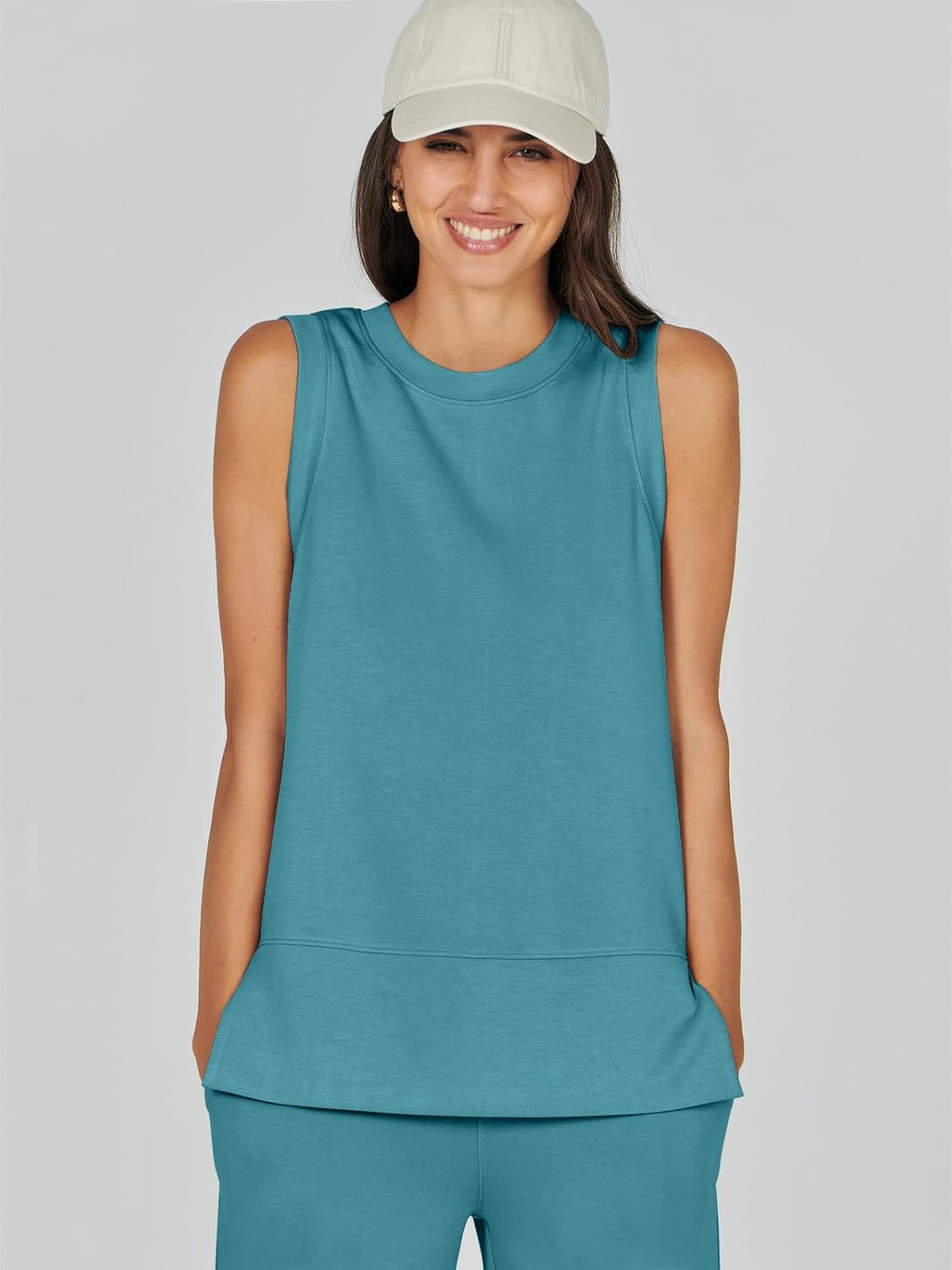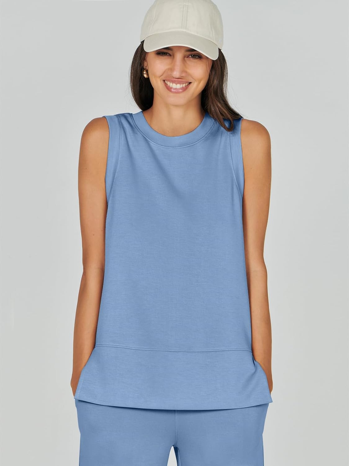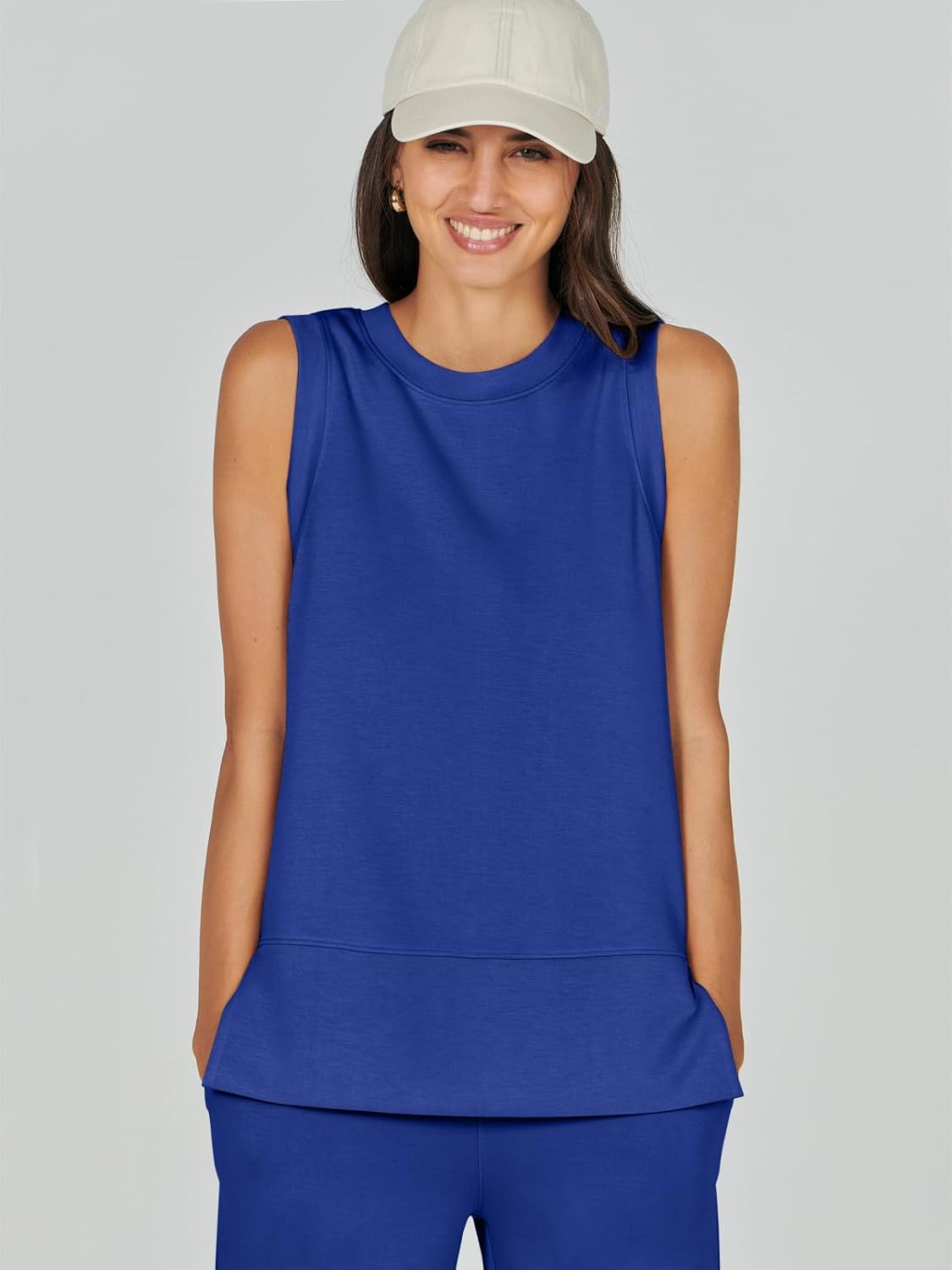 Feature --- Crewneck / Sleeveless / High Waist / Drawstring/ Wide Leg