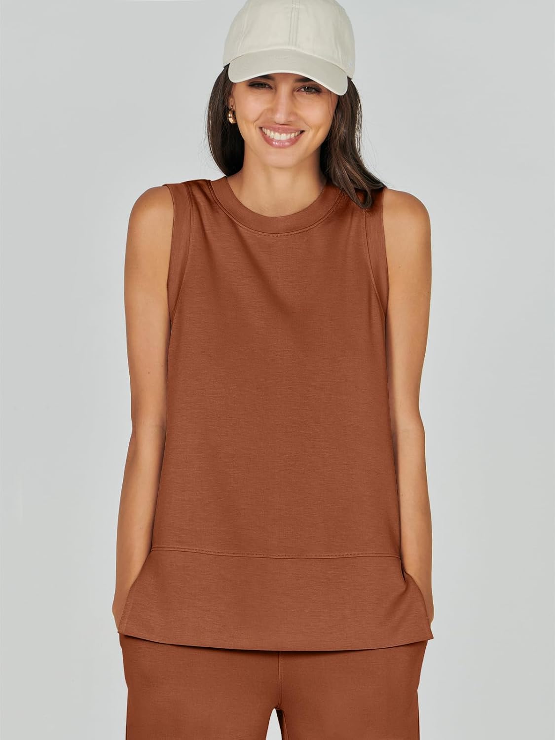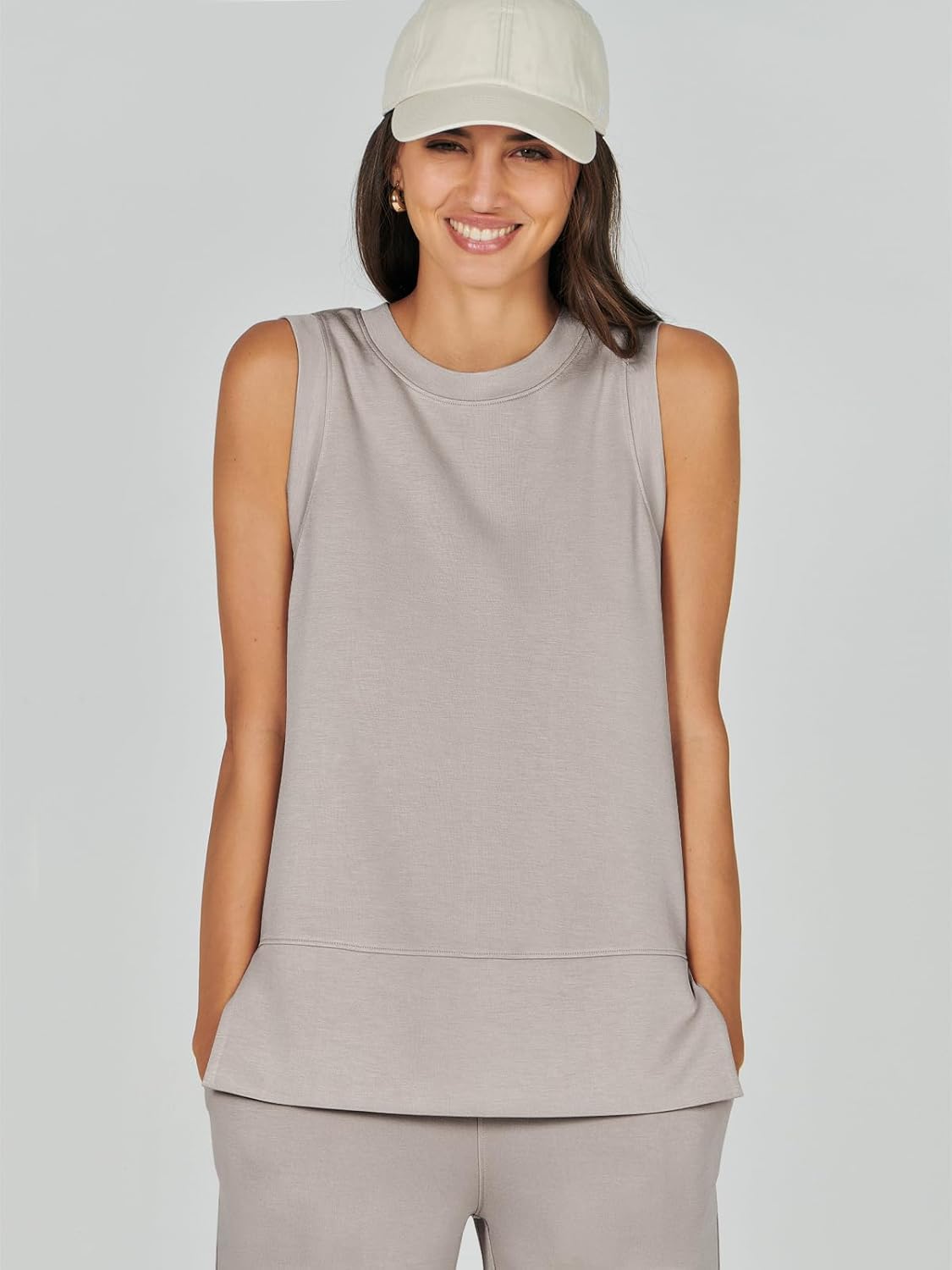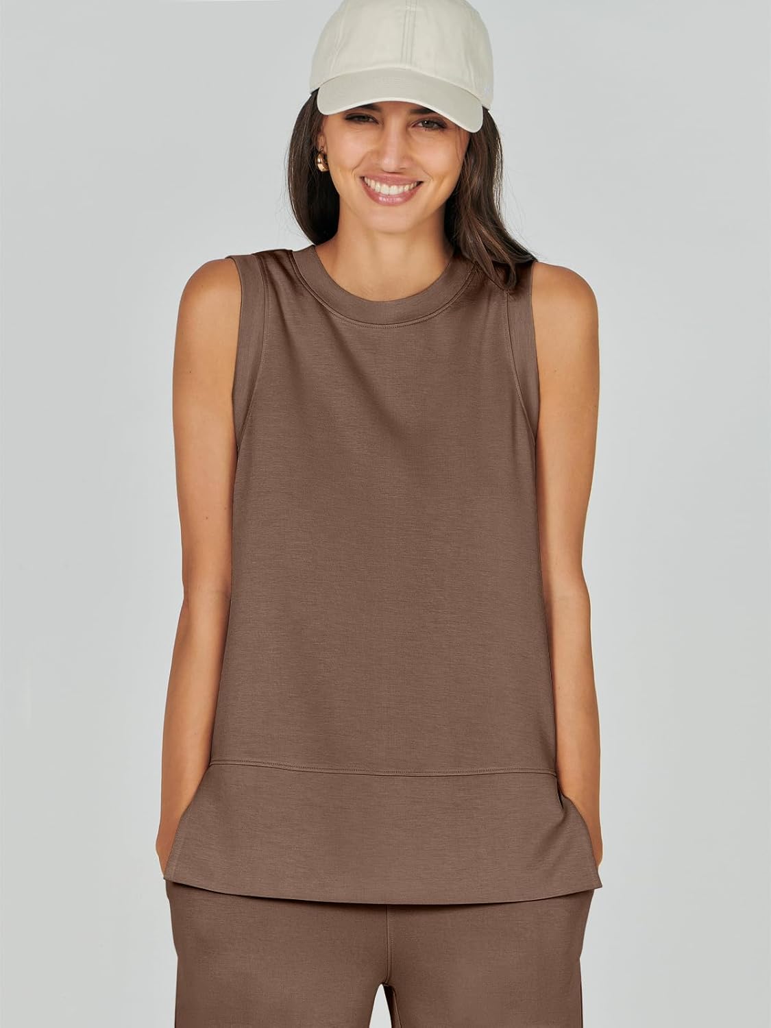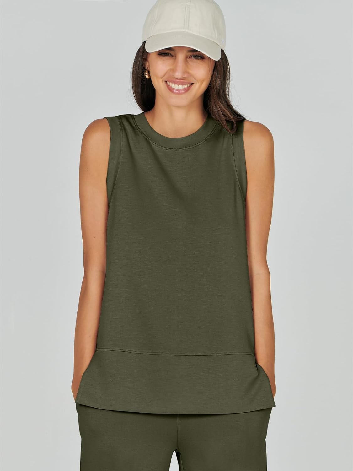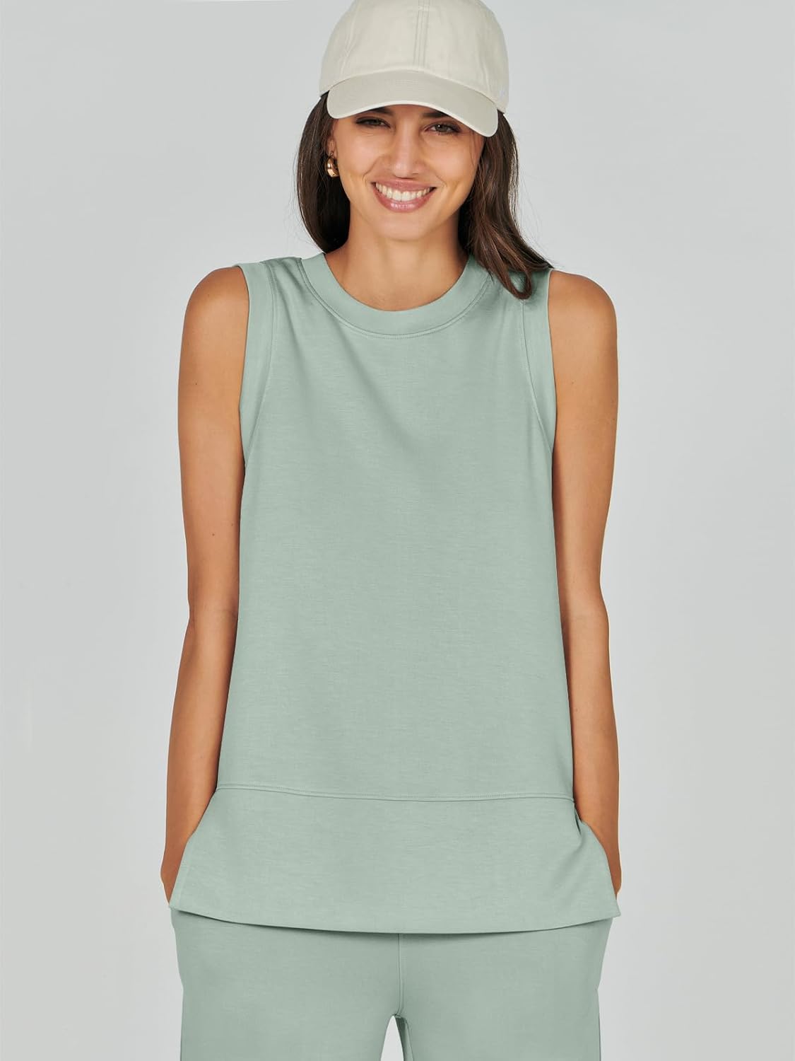 Feature --- Crewneck / Sleeveless / High Waist / Drawstring/ Wide Leg