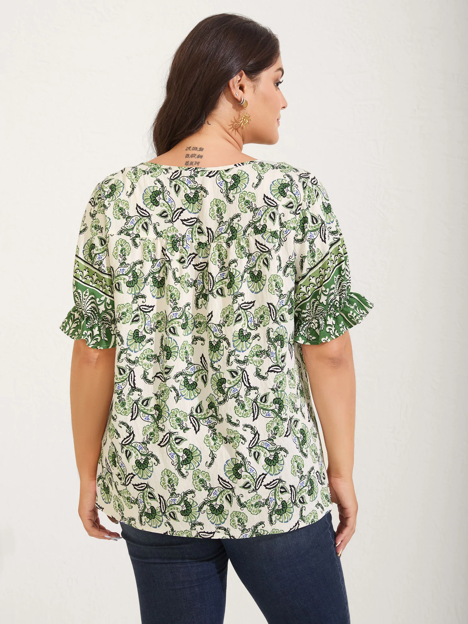 Boho Floral Print Neck Tassels Blouse