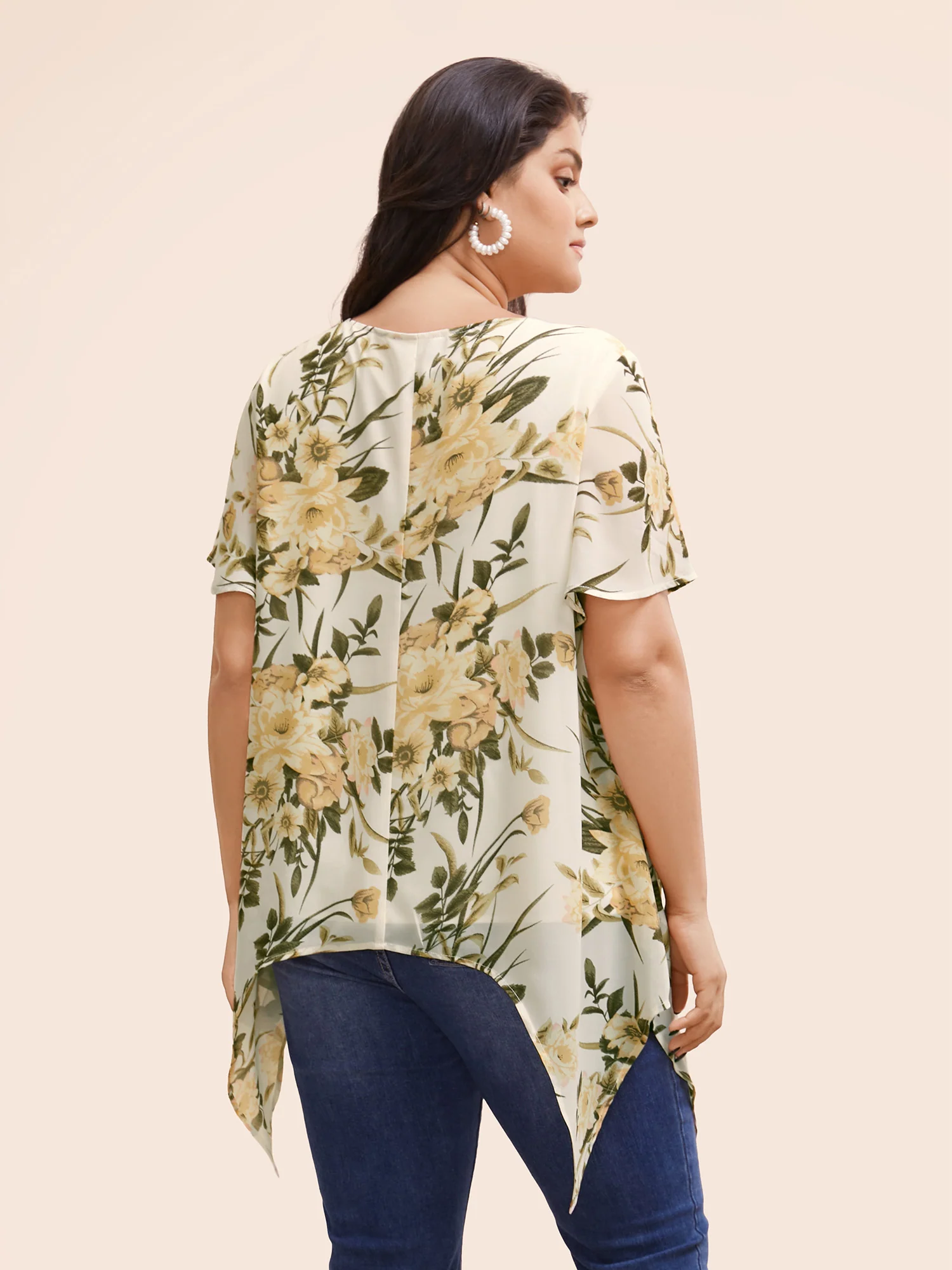 Chiffon Floral Crisscross Hanky Hem Blouse