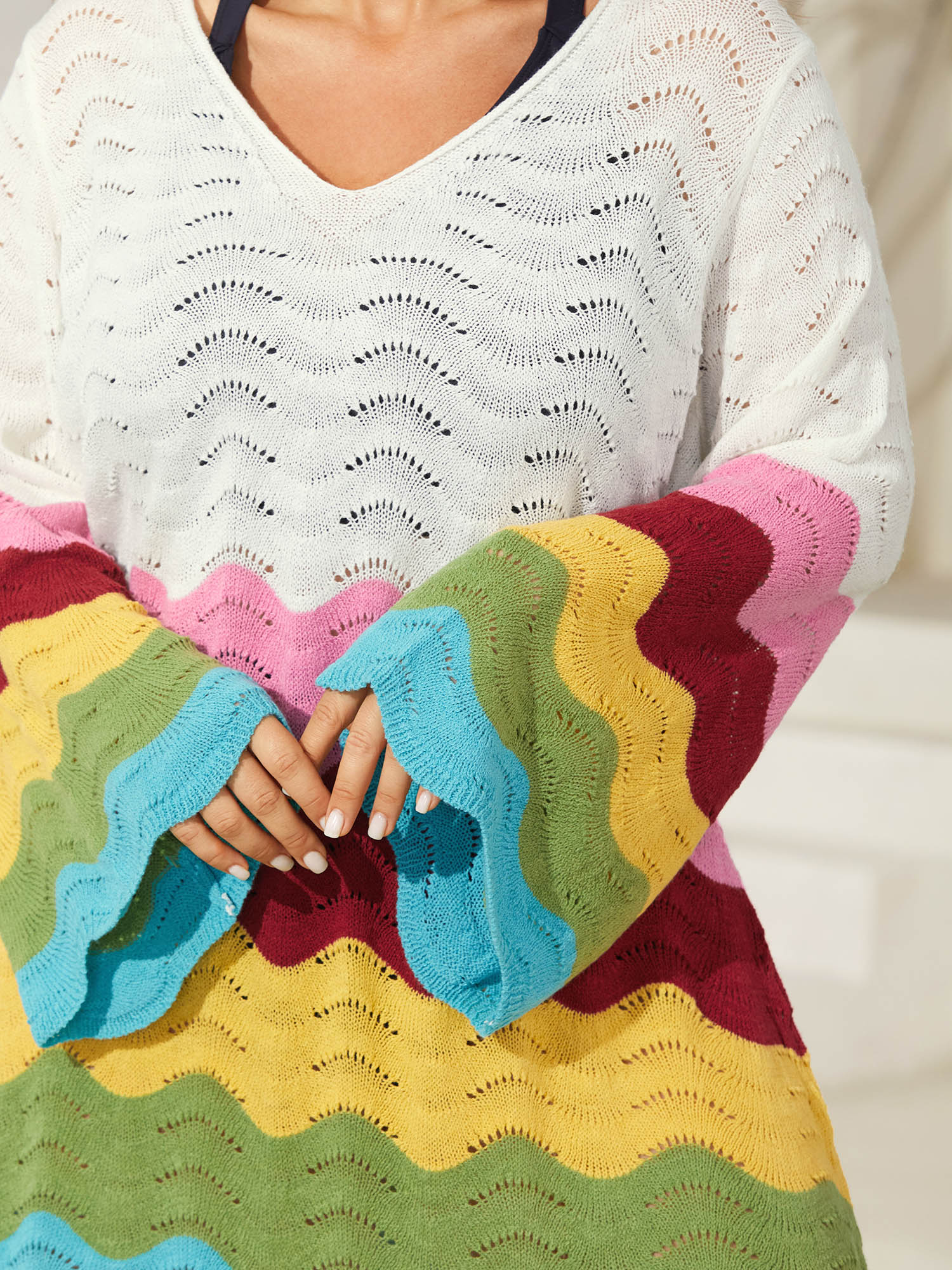 Colorful Waves Cut-Out Swim Cover-Up