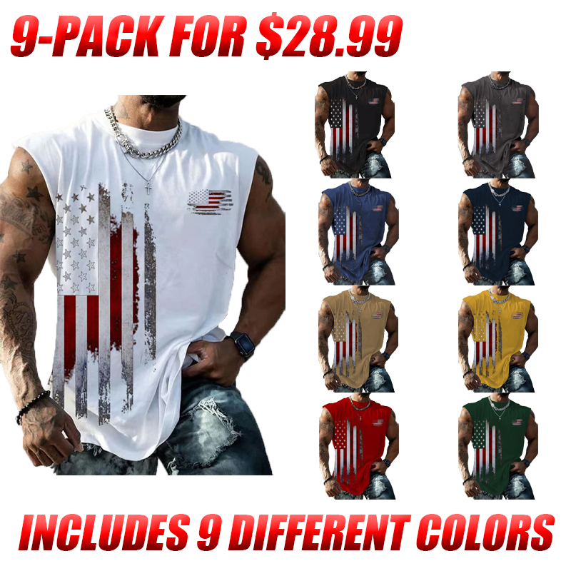 Independence Day Sale🔥  Men's Vintage Flag Print Tank Top—9 packs for only $28.99