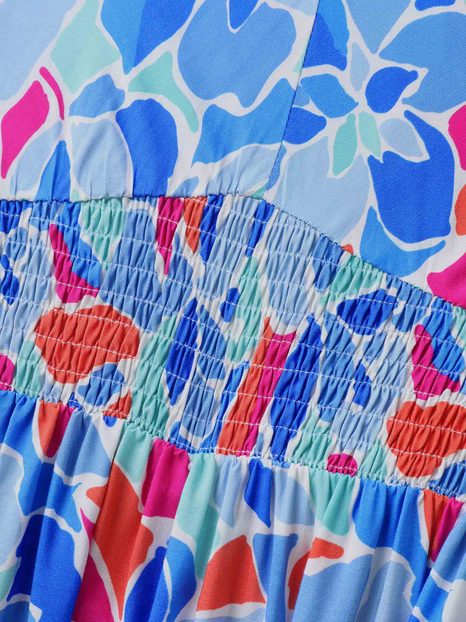 Floral Abstract Shirred Waist Midi Dress