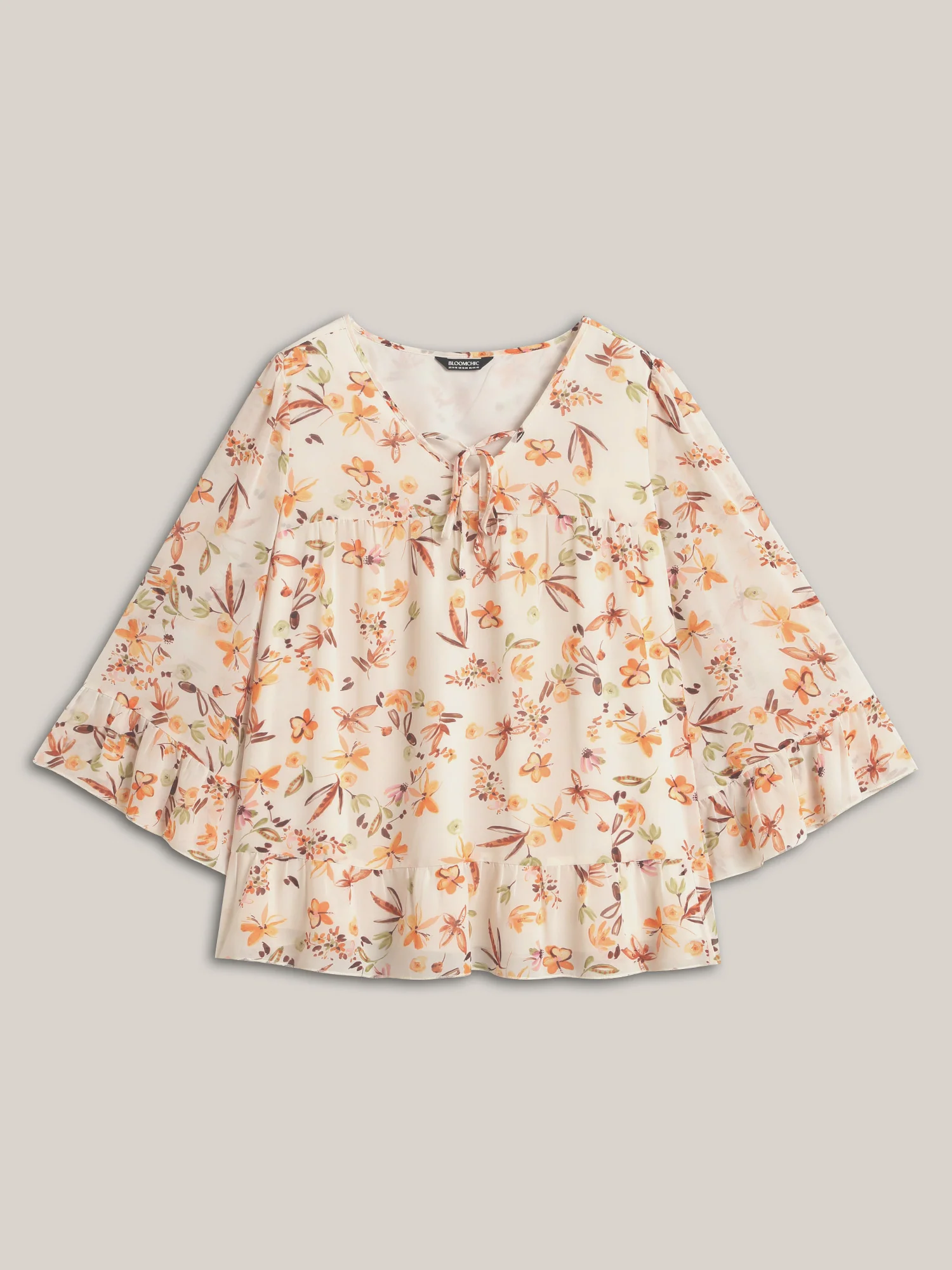 Floral Chiffon Ruffled Tie Blouse