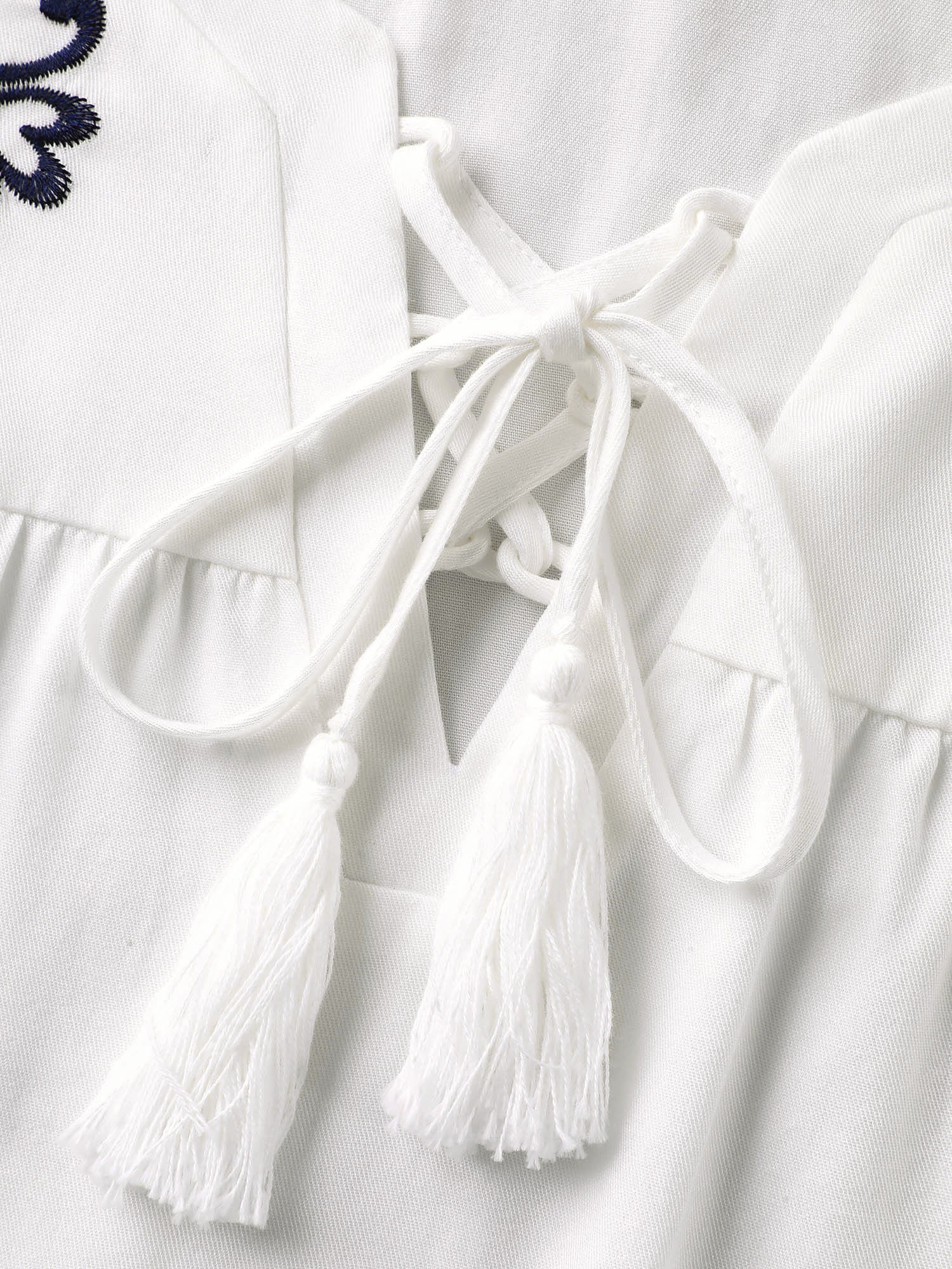 Floral Embroidered Cross-Tie Neck Blouse