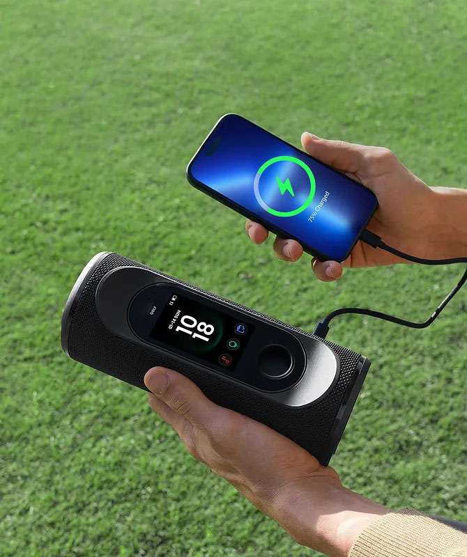 Don’t stop your game or your tunes. Charge your phone via the speaker with 30 W PD fast charging and spend less time waiting. One Type-C cord powers both your speaker and phone—no extra cable needed.