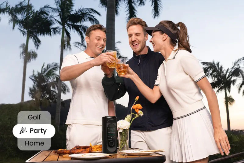 Switch between Golf, Home, and Party modes to enjoy powerful outdoor sound, balanced clarity for home, and dynamic bass for your parties.
