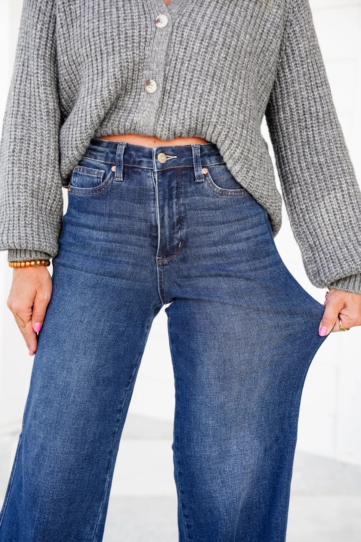 These jeans are perfect for spring, girls! High Rise (check), wide leg (check), tummy control... CHECK!! These jeans are the perfect blend of comfort and style!