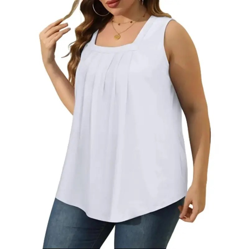 ✦Design: Square neck tank tops with pleat in front, curved hem and loose fit. It's flattering and flowy to hide the stomach which suitable for any body shape.