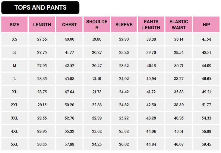 SIZE CHART (INCH)