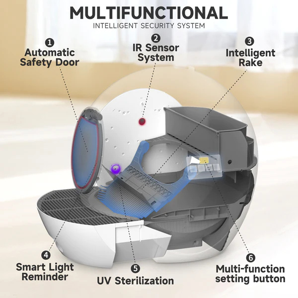 EXTRA-LARGE FOR MULTIPLE CATS: With 60L extra-large space that fits for multiple cats from 3.3lb to 28lb. And also the waste container allows up to 20 days free of scooping for one cat.