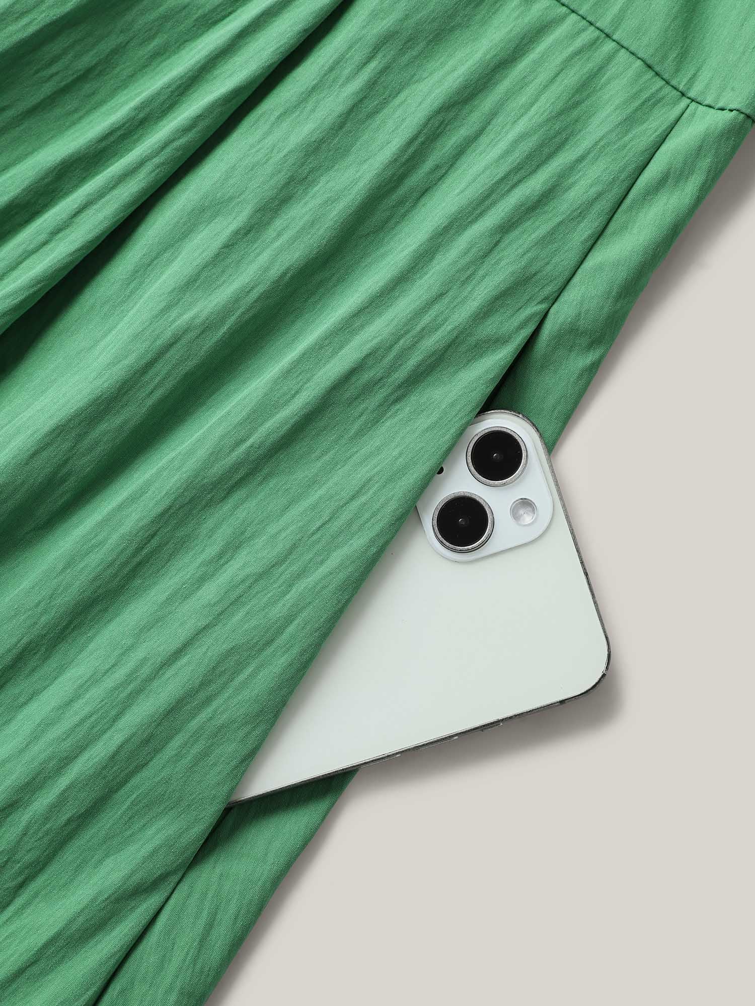 Solid Adjustable Straps Pockets Midi Dress