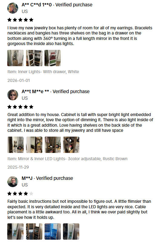 ·【360° Swivel Base & 3 Back Storage Shelves】: Enjoying with the 360 degree swivel base, the mirrored jewelry organizer is more flexible to meet your different needs. 3 back storage shelve of the jewelry cabinet can store your handbag, books or other items, and they can also make the jewelry organizer more stable.