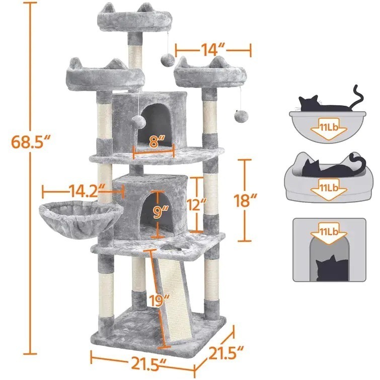 Are you looking for an ideal cat tree for your cats? Try this large plush cat tree. It won’t let you and your cats down! Our multiple-level cat tower is made from durable soft materials, particleboard, plush, metal, and plastic. Our large cat tower has a pretty appearance and reasonable layout. It can fully meet your cats' needs for playing and sleeping and exercising. If you have more than one cat, this large cat house is the best choice. It has multiple levels and layouts and functions. Simple assembly is required and a detailed manual is included. Do not miss this quality cat tree!