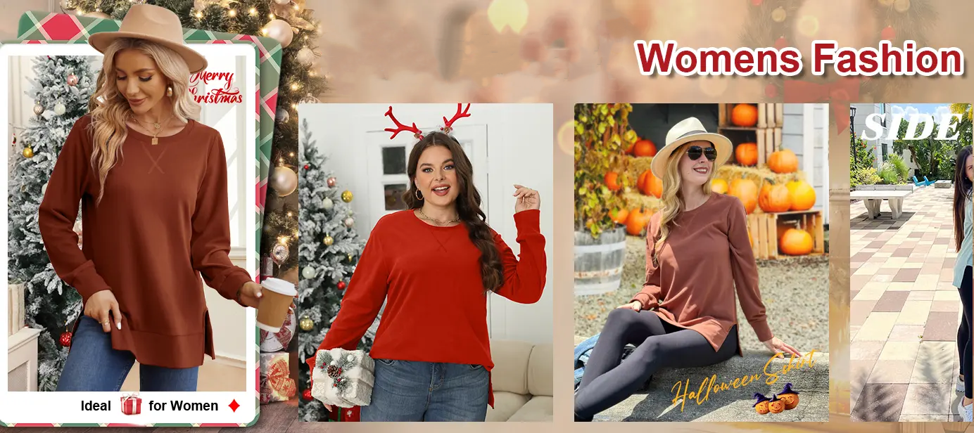 Loose Casual Style,Side Split Long Sweatshirt. Basic and stylish tunic tops, A Must-Have Womens Tops in Your Wardrobe.