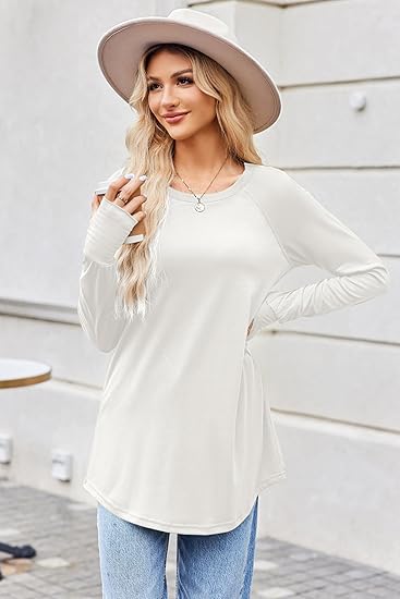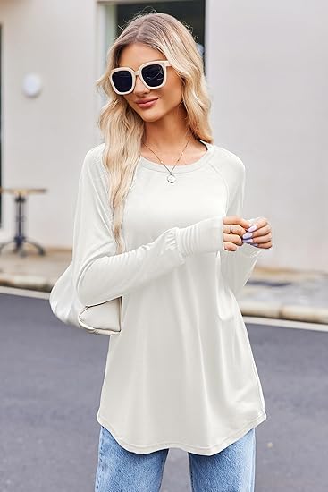 this oversized shirts fits flowy and comfortable, the thumb holes design keeps your hands warm. Pair this top with leggings, jeans, pants, shorts, skirts, capris, or even biker shorts. The curved hem adds a stylish touch, long enough to cover the rear, making it perfect to wear with leggings.