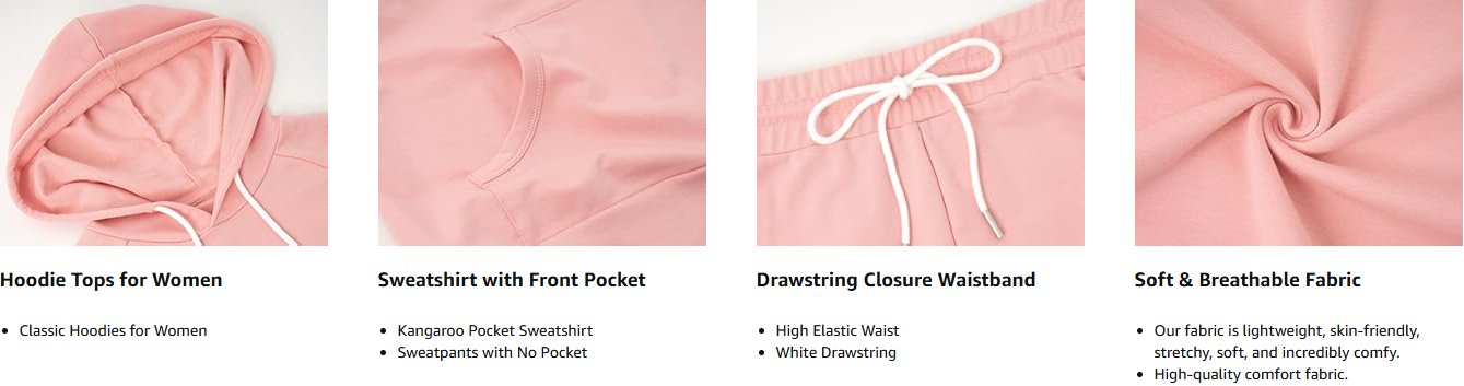 Matching Tips: This two piece sweatsuits set is easy to style for various occasions,Wear it together for workout,or mix and match with other closet staples,Pair the hoodie with jeans or leggings for a casual yet trendy outfit